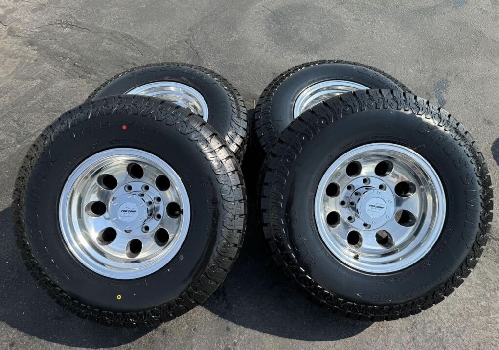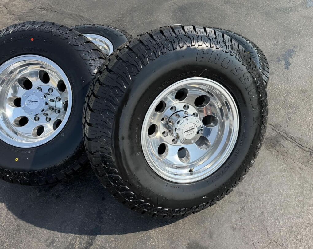 ApplePayBrand new package! 16x10 Pro Comp Mod Alloy -25et offset. Mounted and Balanced on a brand new set of LT285/75r16 load E 10 ply 80 psi tires. 8x6.5 (8x165.1) bolt pattern. These fit Dodge Ram 2500 3500 Cummins, PRE 2011 Chevrolet Silverado GMC Sierra Duramax, and PRE 98 Ford F250 F350 OBS Superduty trucks.