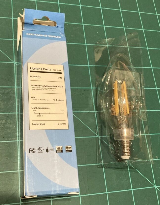 Set of 14, Led candle base filament bulb, 25 watt, 19ko2, brand new