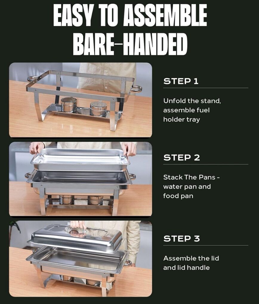 5 Disposable Chafing Dish Buffet frames, Foldable Rack, Food Warmers racks for Parties & BBQ's, Catering Buffet Servers and Warmers Set for Indoor/Outdoor Events