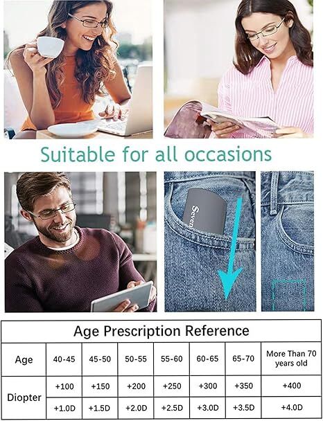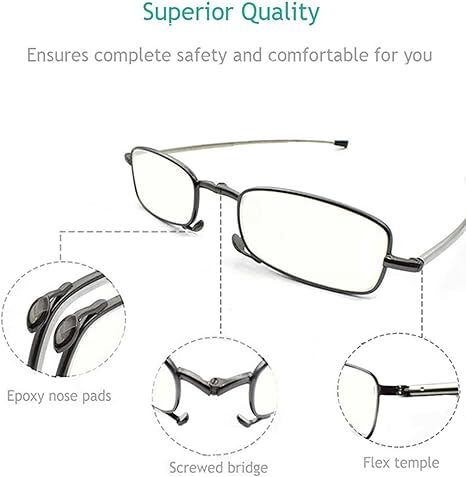 Astonishing Size** The reading glasses are incredibly small and light for their widely using. Foldable Design It makes the reading glasses easy for folding and compact storage. Unrivaled Quality