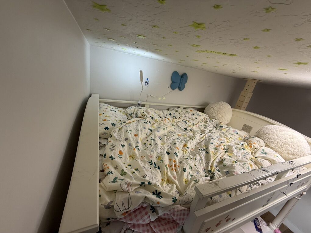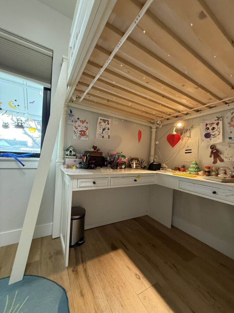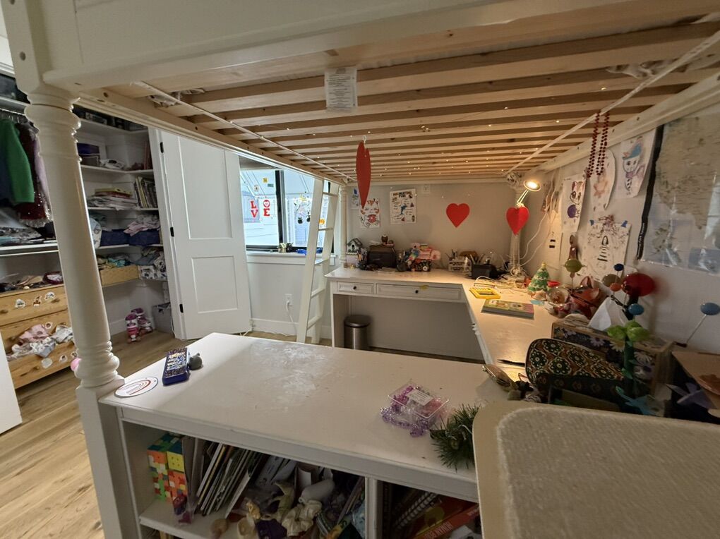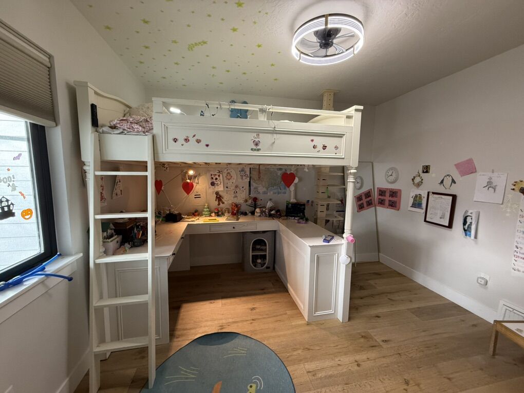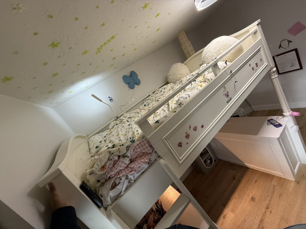 VenmoBeautifully built with style and functionality in mind, this unique setup lets you sleep, study and store your essentials in one place. Featuring a vanity with three beveled mirrors, this all-in-one system is complete with six deep drawers so you can keep your clothes organized. UL GREENGUARD Certified to contribute to healthier indoor air, keeping you and your family safer. Crafted from hardwoods, MDF and quality veneers. Features a Simply White finish with drawer pulls finished in antique brass. Detailed with with molding-framed drawers and large bun feet. Requires a full-size mattress do not use box spring on loft bed. Due to the height of mattress restrictions, recommended maximum mattress height: 7.5. Dovetailed drawers feature bottom mounted drawer glides. Desk is equipped with a flip-down keyboard tray; the bookcase features four-cubbies. Ladder can be assembled to attach to either end of the bed. Loft was designed for use in room with 8' ceilings. Make sure you include ceiling fans and hanging fixtures when measuring.