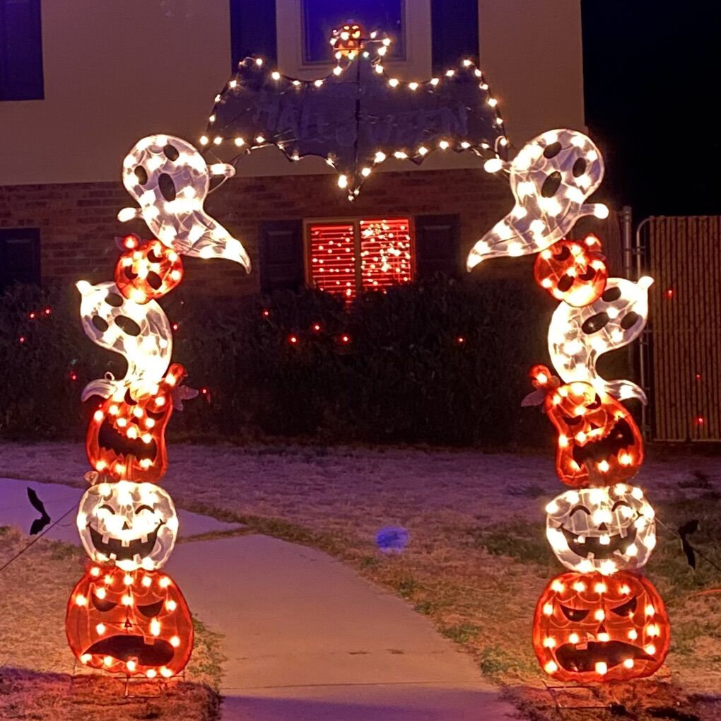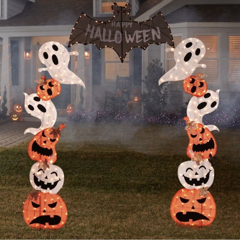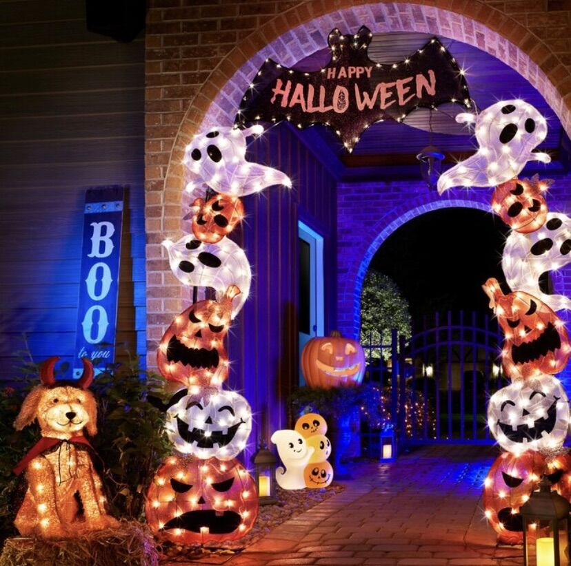 Lowe’s Description: Item #: 4958322 | Model #: ES75-362 Fun display day or night. Ghosts and pumpkins join with a happy bats to make your Halloween even more fun. Lighted for night decoration and vibrant colors to enjoy this arch during the day.\