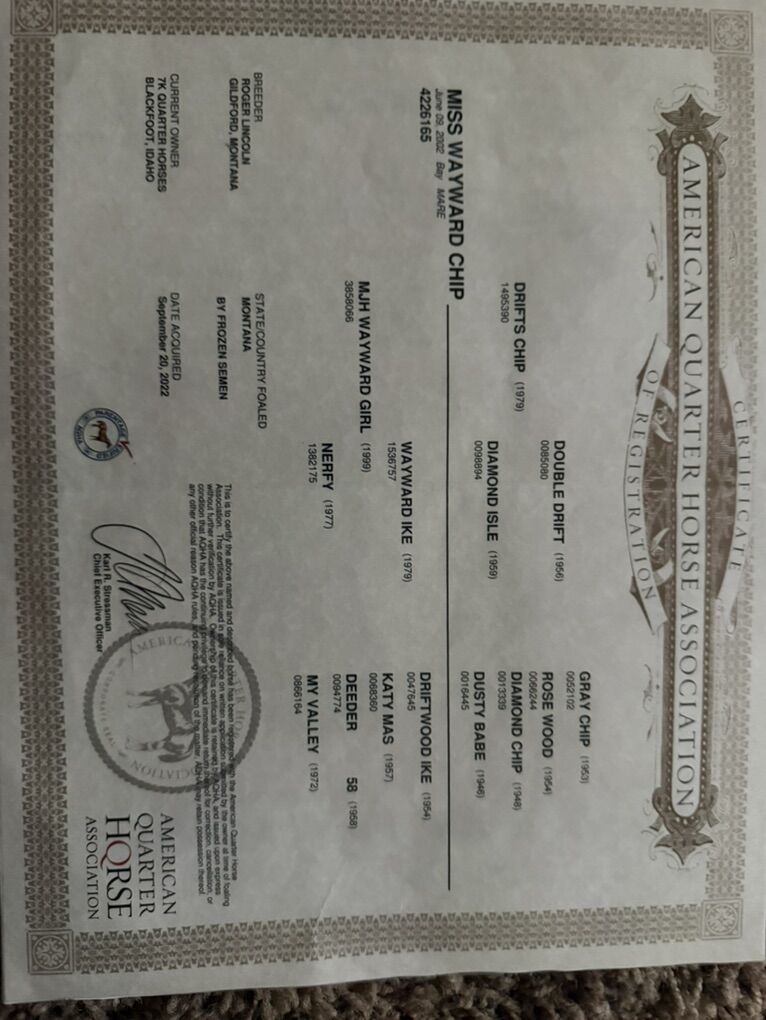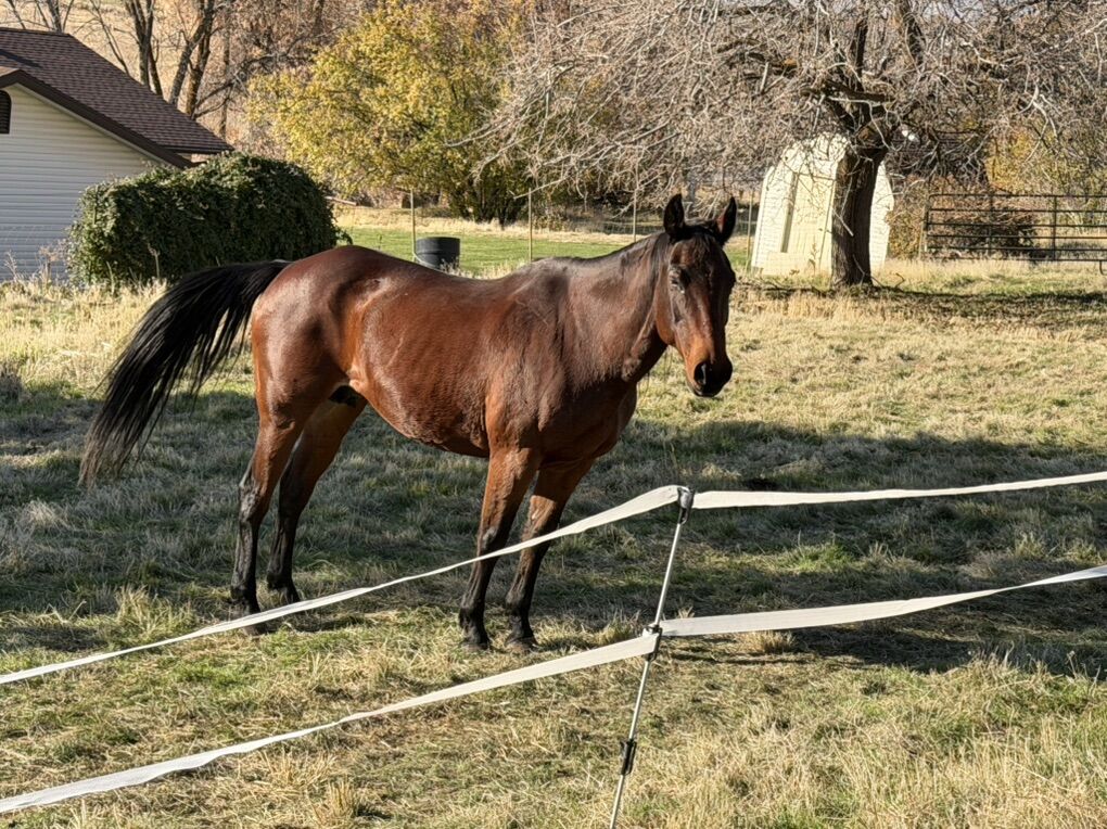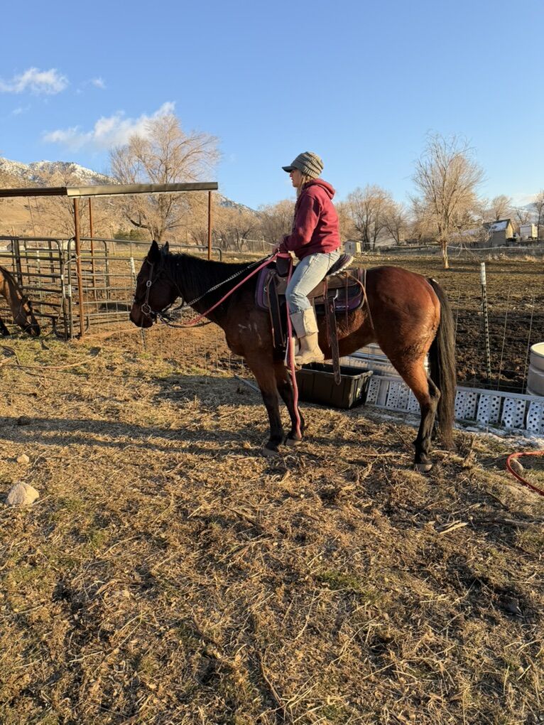 Very sound stout broodmare, I don’t know how broke she is but she still has fancy moves and you would never know she was in her 20’s. She bred a foal in 23 papered and I was told she foaled in 2024 but it’s not on aqha. I was going to breed her once more and let her retire in the pasture but I am looking at a few other horses to train sooner. 2k obo. She is a little food aggressive and gets after my other mare of they are both at the feeder.