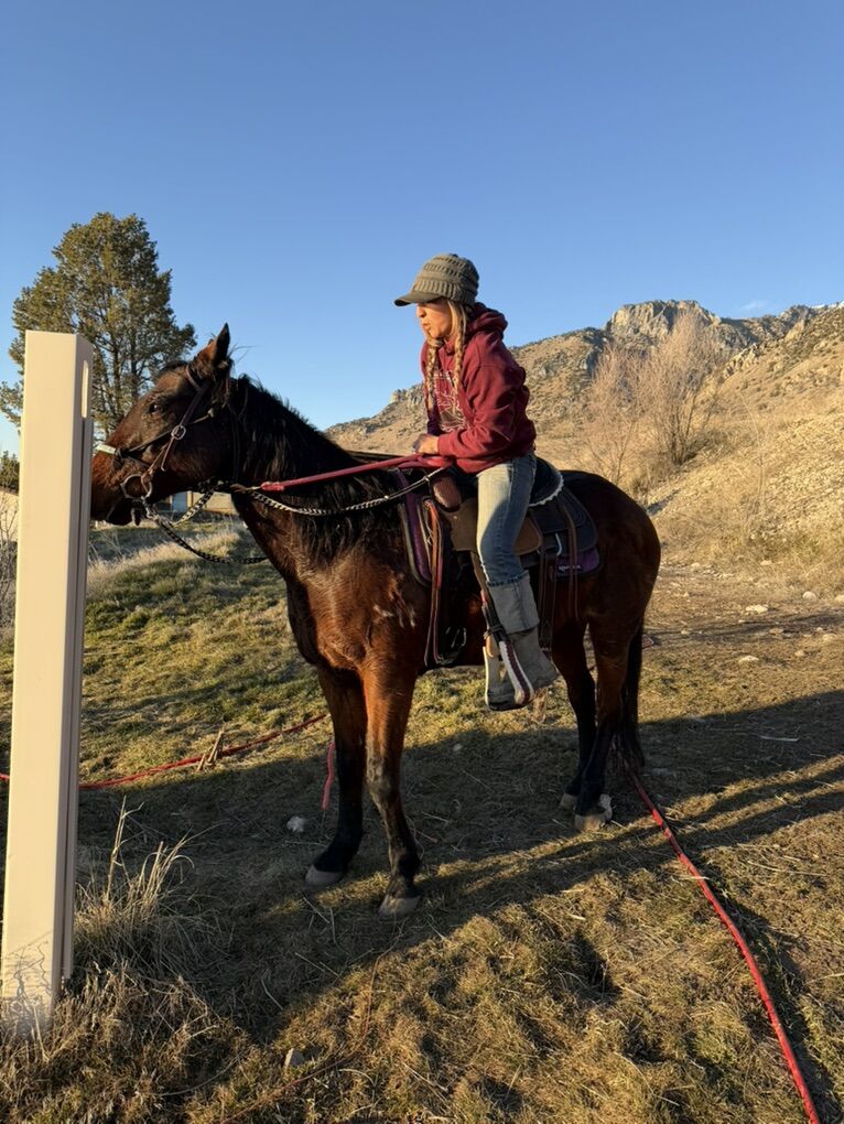 Update: She is hard to catch but we got time and caught her this weekend, a bit buddy sour. But we saddled her, and sat on her no bucks or rears. She will take a bit but throws her head a bit. Doesn’t respond great to leg pressure , but again no bucks or rears. Walked no issues, now the good part, she would probably pack amazing she follows and ponies with no care in the world. She could possibly be ridden but would need a hefty tune up. Video on request as it wouldn’t let me upload it.