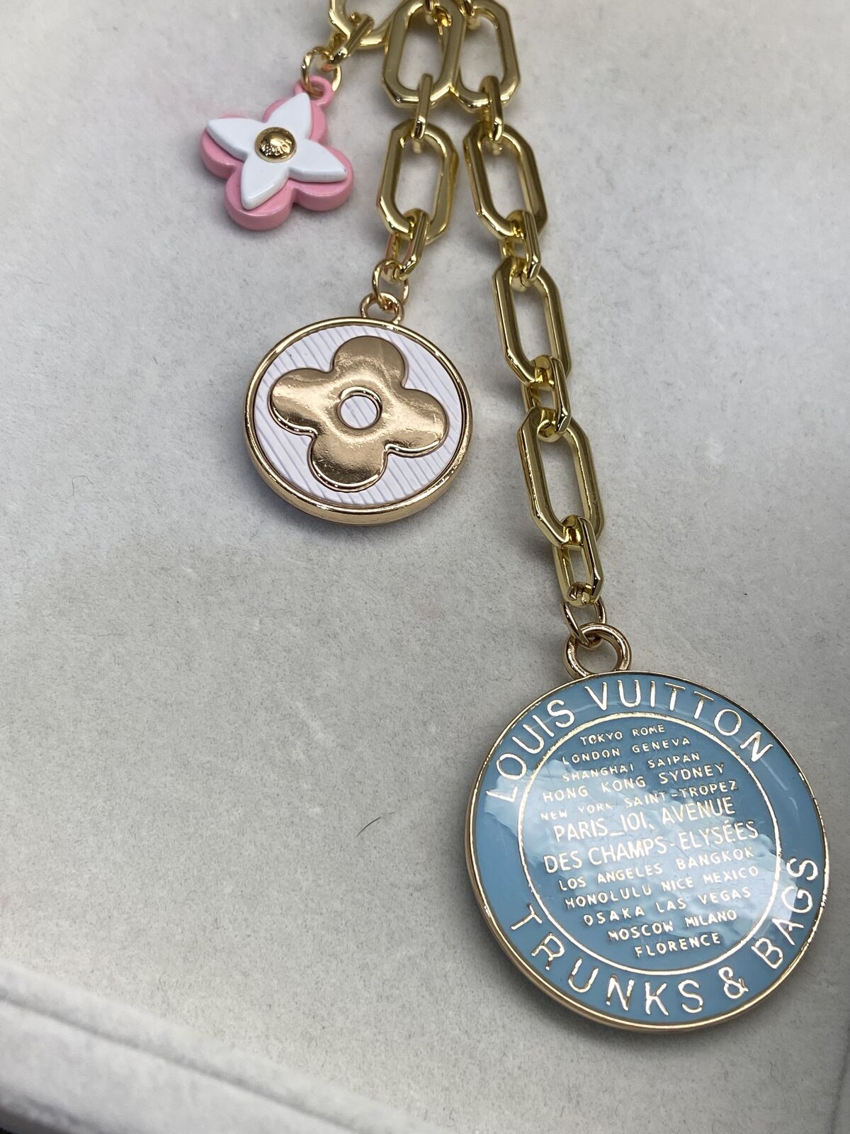 ApplePayUpcycled charms handmade into a keychain or bag charm with gold heart branded carabiner.