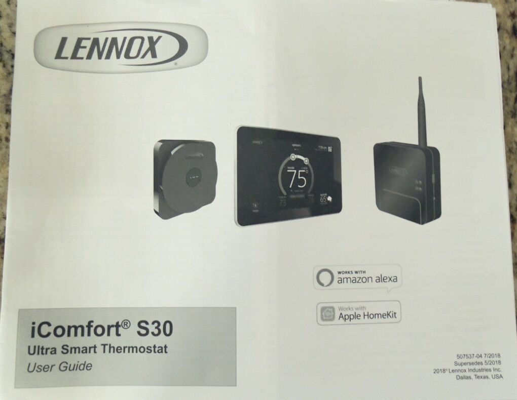 Lennox iComfort S30 Ultra Smart Thermostat bundled with a working Lennox iComfort S30 Smart Hub Controller. This ultra smart thermostat from Lennox features a large 7″ HD color touchscreen and advanced Wi-Fi connectivity for controlling your HVAC system. It’s designed to work with Lennox communicating equipment and provides remote access via the iComfort app, geo-fencing energy savings, and smart comfort control. The included Smart Hub enables full system communication and supports features such as scheduling, Smart Away, humidity management, and compatibility with voice assistants (Alexa, HomeKit, Google Assistant) when connected. Great upgrade or replacement for Lennox iComfort systems.
