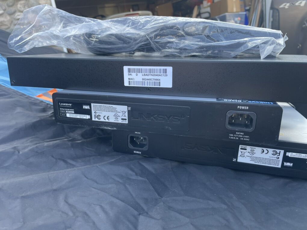 Comes with 2 linksys SR224 Ethernet switches multi port ( no cords)