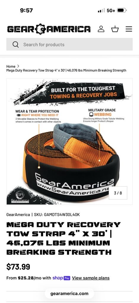 FOUR-IN-ONE + BONUS: Use it as a Tow Strap, Recovery Strap, Tree Saver Strap, or Winch Extension Strap, making it an extremely versatile product. We've also bundled an over-sized storage bag to fit all your towing supplies (hooks, shackles, gloves) plus a convenient hook and loop tie to keep it neatly rolled BUILT FOR THE MOST DEMANDING TOWING & RECOVERY TASKS: With a massive 46K lbs MBS (Minimum Breaking Strength) and 15K lbs WLL (Working Load Limit), our strap is ideal for towing large trucks, pulling heavy equipment or moving large debris; An essential tool for off-roaders, emergency personnel, farmers or anyone needing to haul heavy objects REINFORCED EYES & PROTECTIVE SLEEVES: Our large double-web-loop ends are well padded and reinforced; This allows our strap to withstand the high tension and wear that typically occurs at connection points; It also prolongs the life of the strap and protects your equipment