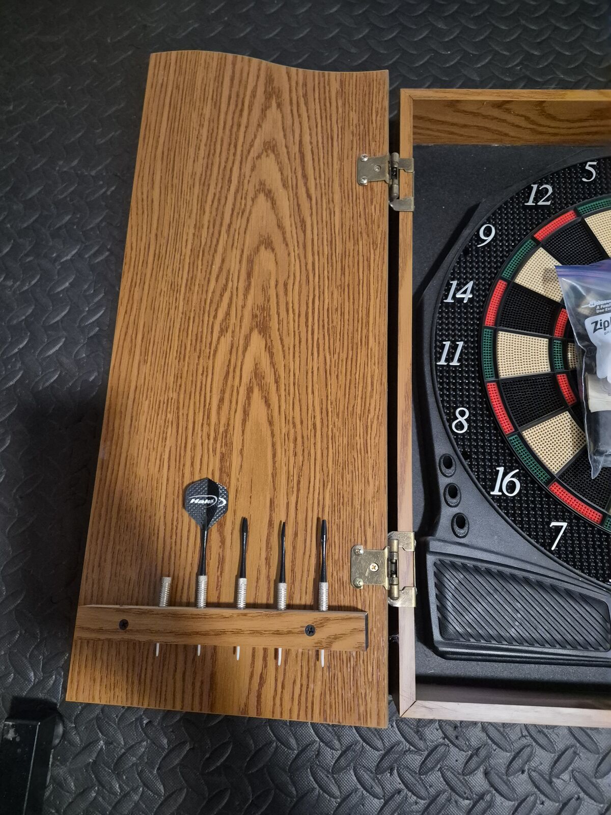 VenmoHalex Multiple Player Electronic Dartboard w/ Wood Cabinet Great Condition comes with some extra darts