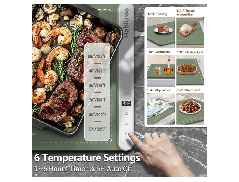 Food Warming Mat - Day Gifts & Kitchen Gadget, Electric Warming Tray with 6 Heat Settings,6 Timers,Graphene Rapid Heating, Portable & Rollable,Easy Clean-Food Warmers for Parties, Buffets & Daily Use