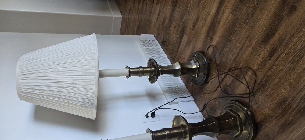 Venmo$300 obo These are a pair of vintage Stiffel brass table lamps. perfect working condition. Can come with one shade. 36.5" without a shade 41" with a shade There are two different ways to turn it on from the bottom or the top. The spanish fork pickup or smithfield pickup. Fcfs venmo to hold Stiffel is a renowned American lamp manufacturer, established in Chicago in 1932, known for high-quality, traditional brass designs. The lamps feature an antique brass finish and a classic, somewhat Hollywood Regency or mid-century modern design. Older Stiffel designs, particularly those from the 1940s onwards, are considered collectible and have value in the vintage market. The lamps appear to be in good vintage condition, with some expected patination from age.