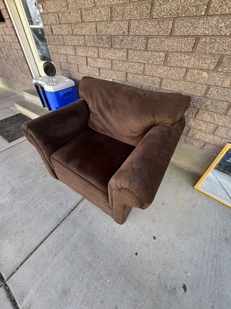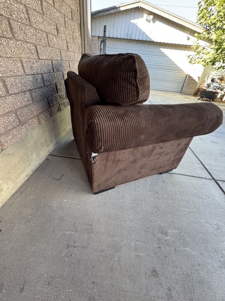 Corded brown sofa couch chair. Has a small hole from the cat on a hard to see place. Only contact if able to pick up immediately.