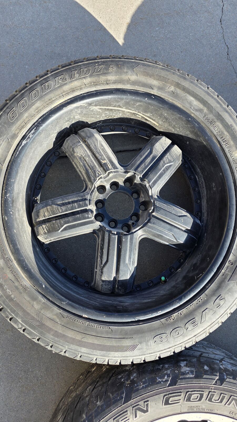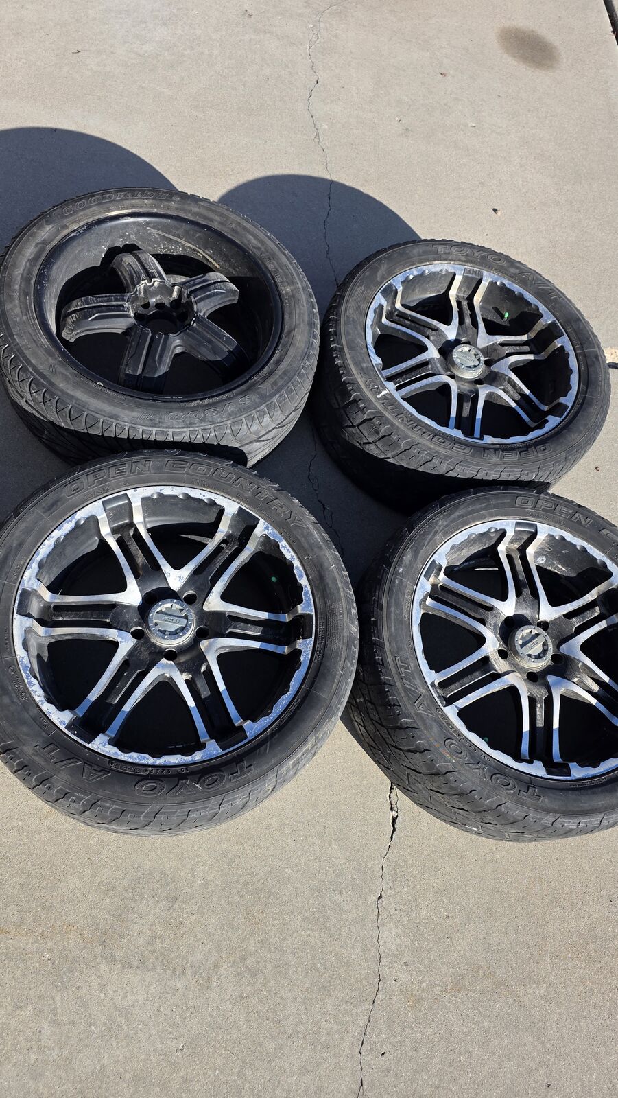 VenmoNot a complete set. There are 3 Gear wheels and 1 Black Diamond wheel. Tires are worn out. Gear wheels have a 15 offset and the Black Diamond has an 18 offset. The Black diamond has two lug patterns avaialable, see picture. I believe these fit a Ram.