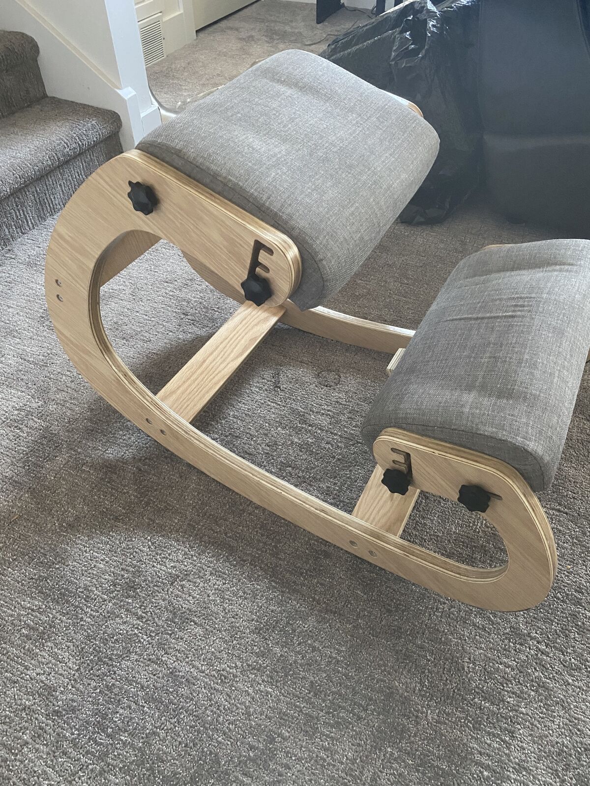 VenmoKneeling chair that also rocks. Adjustable. Selling because it turns out I don't like kneeling chair.