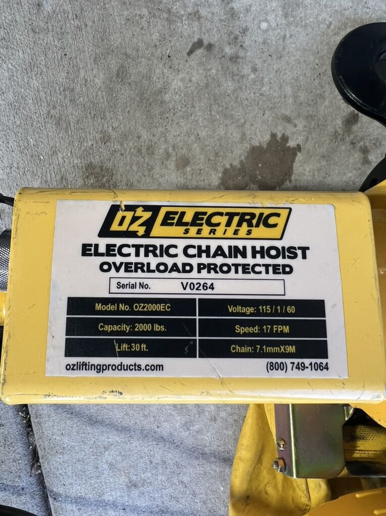 I have an OZ lifting 1T 30’ chain electric winch for sale. It’s nice because this winch can run off your standard 110 outlet. Only a few weeks old and works great. Don’t have any use for it anymore. Paid $2700