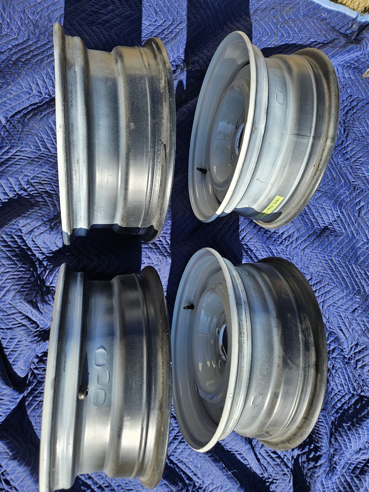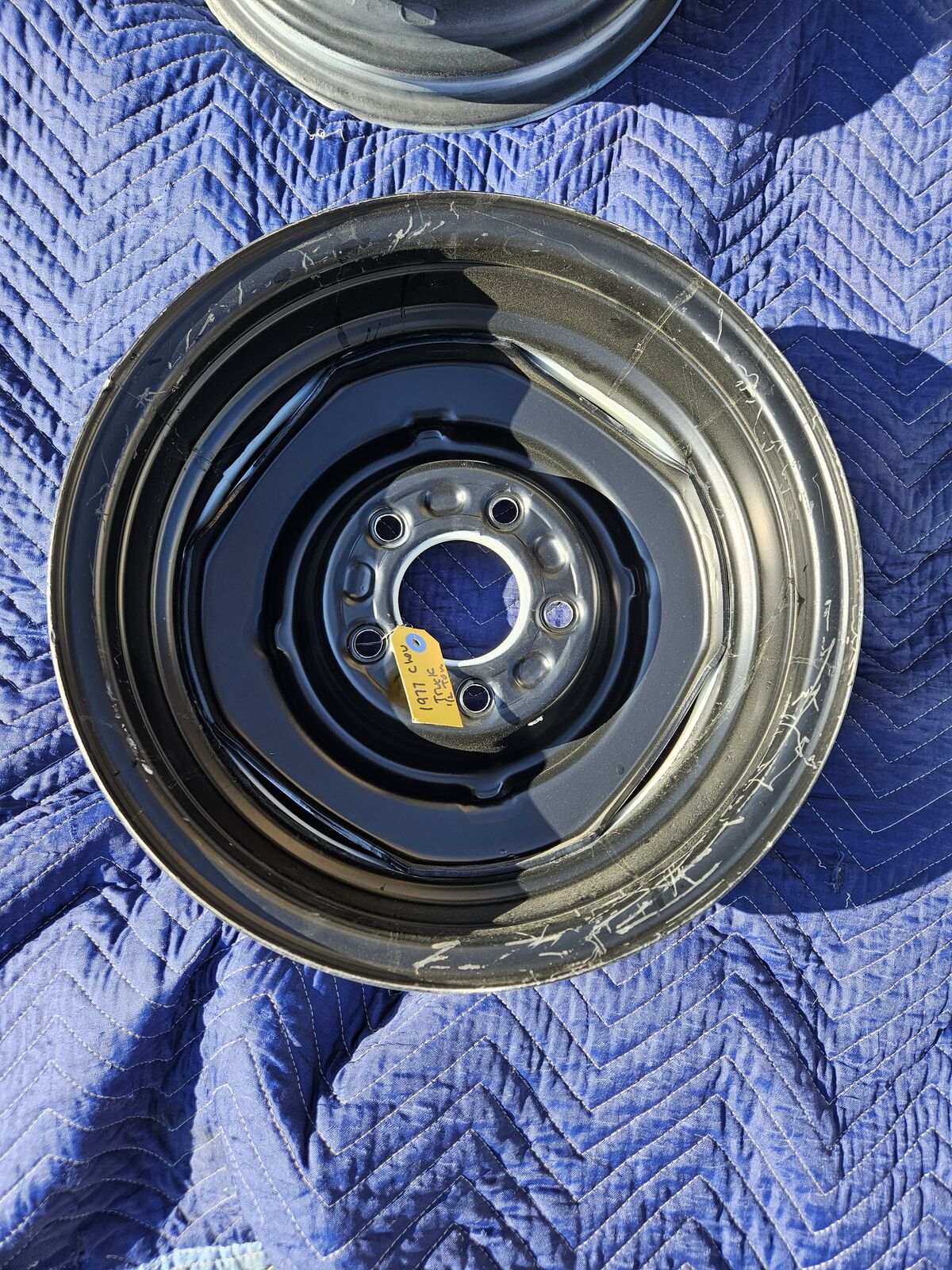One set of (4) factory 5 lug 15x6 Chevy wheels. Wheels have been sandblasted and painted. Nice shape