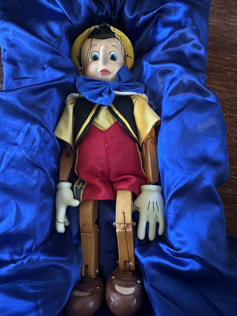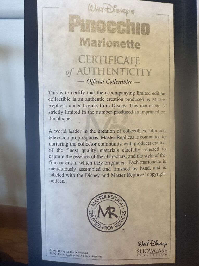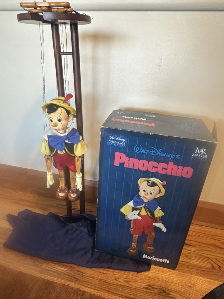 VenmoDisney replica Pinocchio Marionette. Good condition some wear and tear. Includes authenticity certificate, original packaging, and stand.