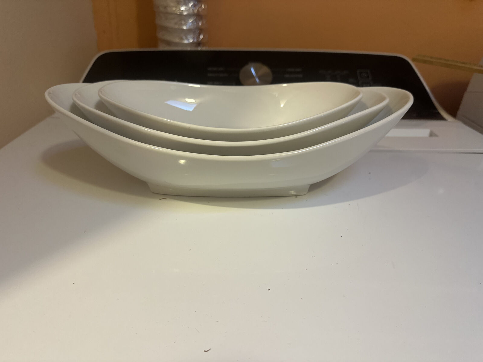 Set of three incrementally larger oblong serving bowls. Sold individually or as a set.