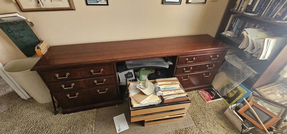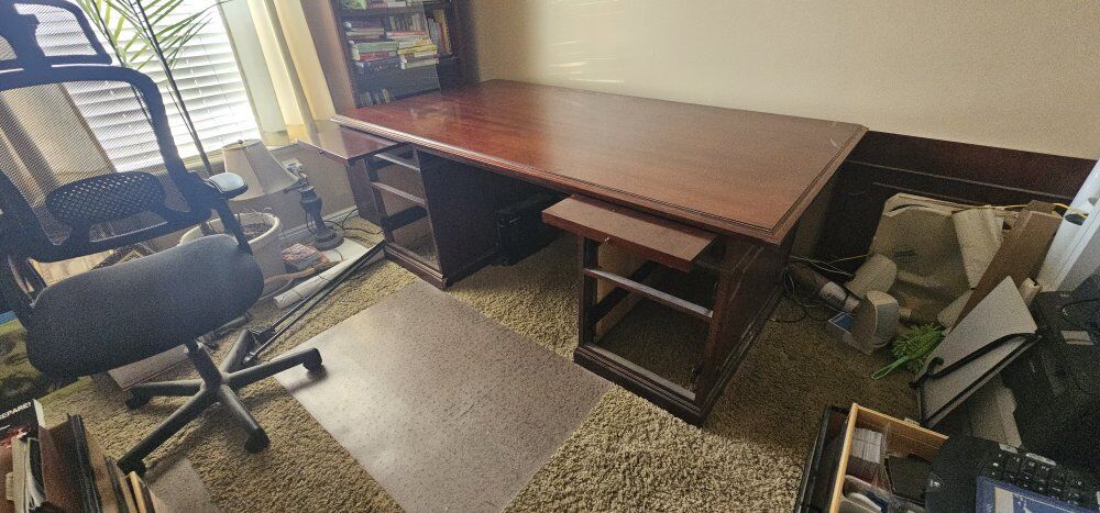 VenmoThis is an exquisite executive desk made by Kimball manufacturing. Desk is 78x42 w Glass Cadensa is 89x19 2 bookcases 33.5x71