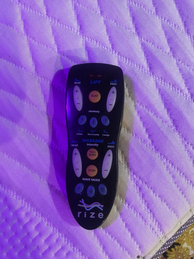 Fully adjustable, head and foot incline, massage, gravity release, and side lighting. The dimensions are 74 x 79. Hardly ever used in guest bedroom so it’s basically good as new. Comes with Rise remote with all features working perfectly.