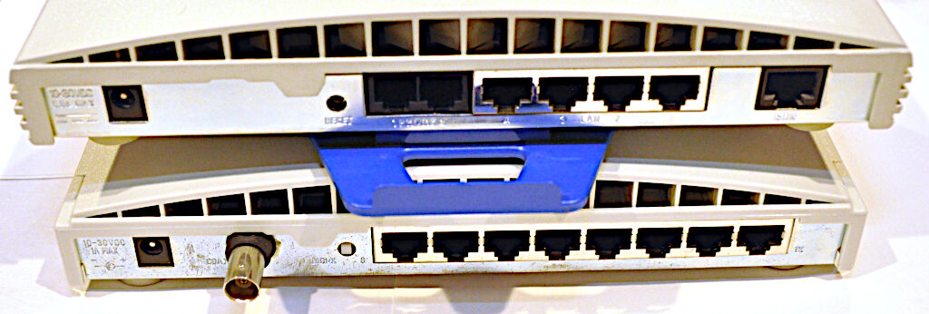 These worked the last time they were installed in an office lan. Ethernet speed is 10Mb/s. ISDN speed is determined by phone company. Modem provides 4 network connects and also has two analog phone connections on back. The hub provides 8 network connects.