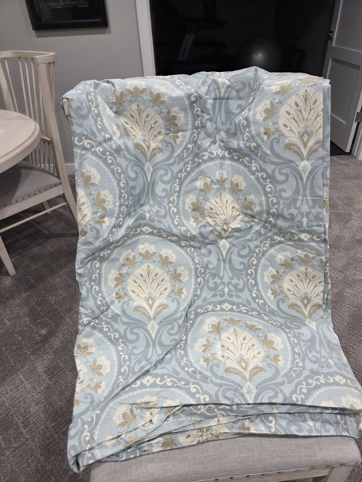 VenmoPre-owned Pottery Barn King Size Duvet Cover and Pillow Shams. There are 2 standard and 1 euro sham in the blue. In the small knit there is 1 standard and 1 euro sham. These were all used for decor only not used for actual bedding. In excellent condition. I have several pieces that you can mix and match if you want or you can just take the duvet and matching shams. Prices listed below;
