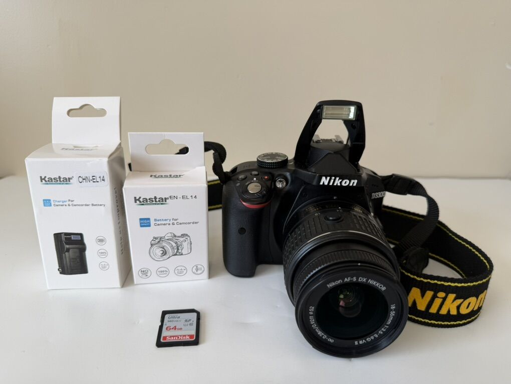 VenmoNikon Digital Camera D3300 24.2 MP Digital SLR Camera, 18-55mm Lens 64GB Memory