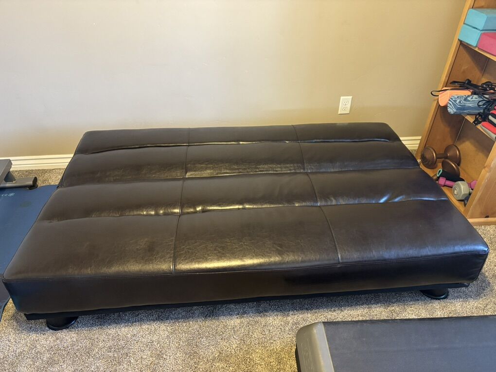 VenmoLeather futon in excellent condition and lays out to a full size comfortable bed!