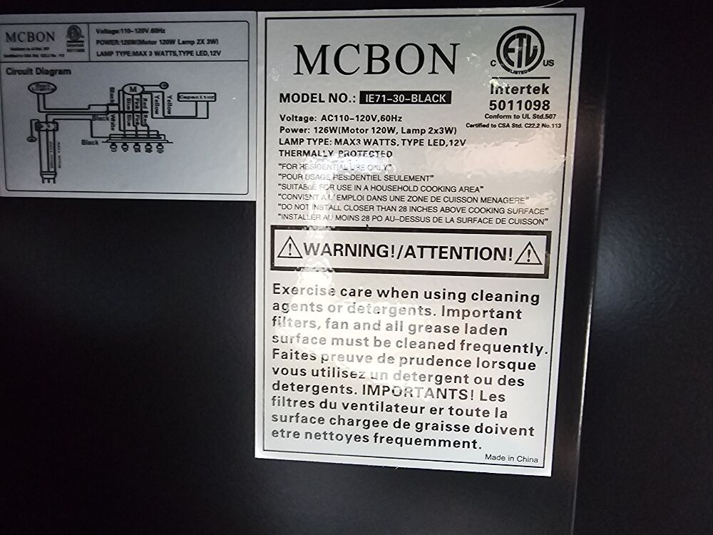 GooglePayTitle: MCBON 30" Range Hood Insert, 600 CFM, Ducted/Ductless, Black Stainless