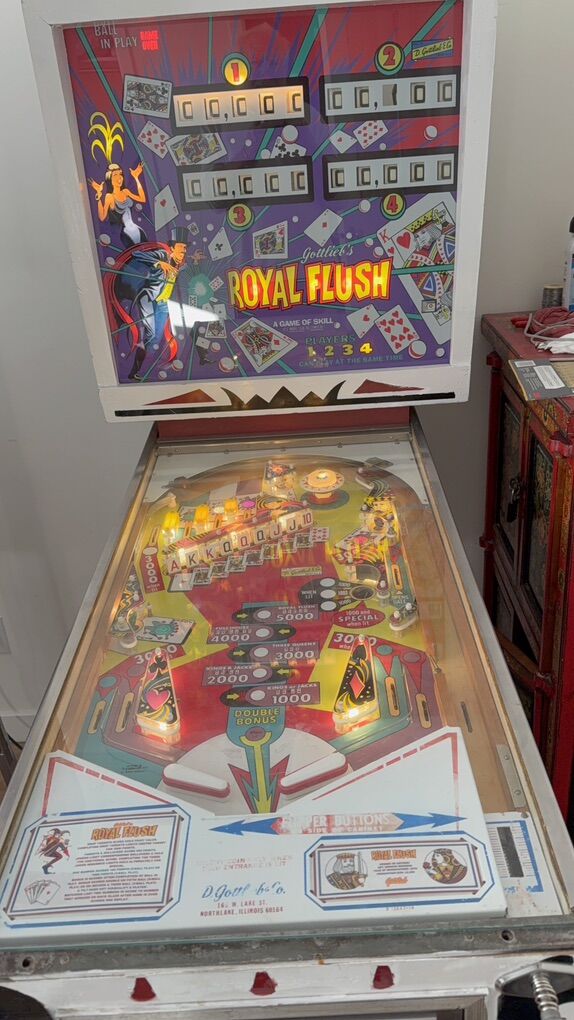 2 pinball machines for sale both work however the royal flush needs work. $5000. Or trade for a newer electronic scoring pinball machine.