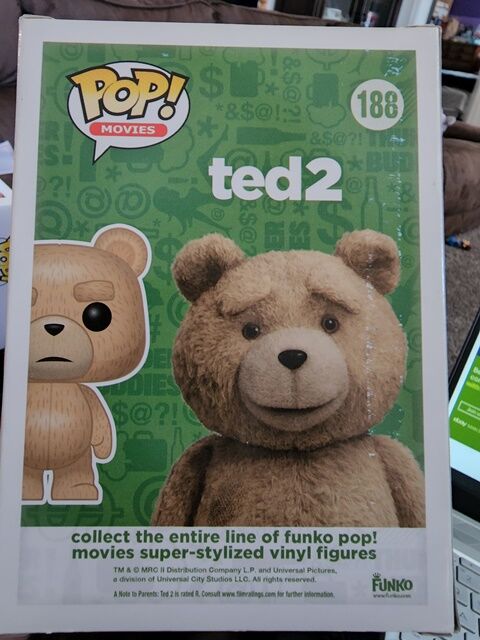 PayPalWe Are Selling Funko Pop Ted 2 Ted #188, Asking $20 obo, Box is in Fair Condition with visible creases or dents, Cross Posted FCFS.If you have any ?s please ask. Thanks for looking please look at my other items.
