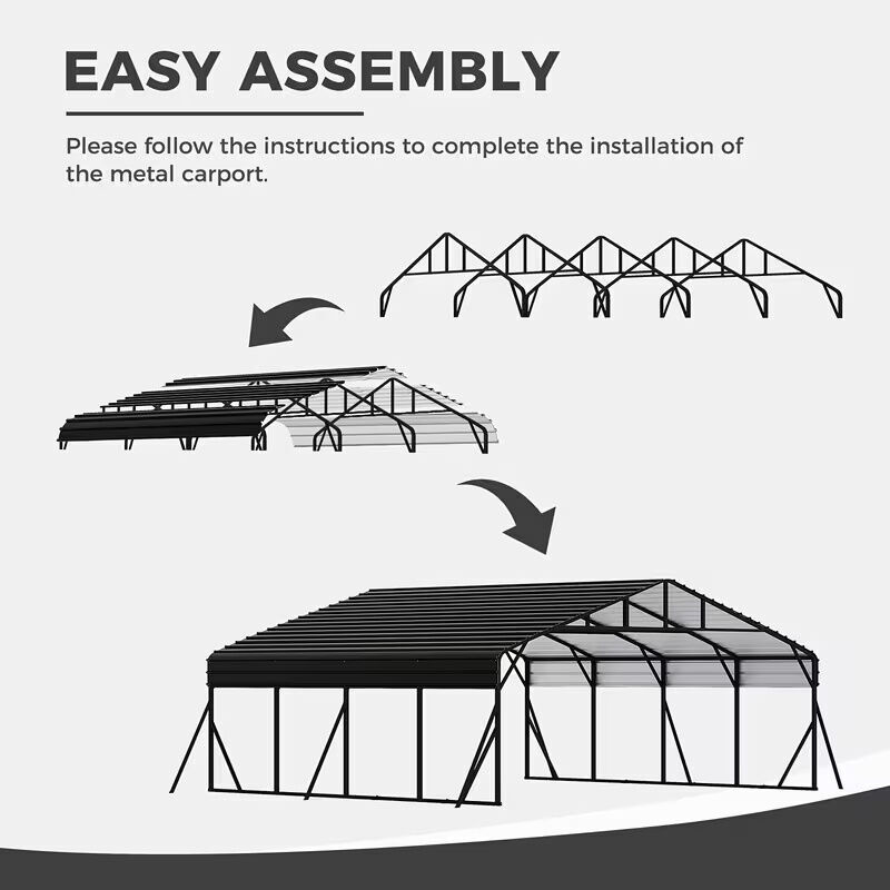 ZelleBrand new 20 ft x 20 ft heavy-duty metal carport, still new in box. This is a galvanized steel frame and steel roof design intended for year-round outdoor use. Suitable for cars, trucks, boats, ATVs, trailers, or equipment. Key details: • Size: 20’ x 20’ • Galvanized steel roof & frame • Open-sided carport / garage-style shelter • Designed for snow, sun, rain, and hail protection • Bolt-together assembly (tools required) • All parts included as shipped from manufacturer Condition: • New, unopened packaging • Never assembled Notes: • Buyer responsible for anchoring, permits, and local code compliance if required • Assembly recommended with 2+ people Great alternative to expensive prefab garages or fabric carports.