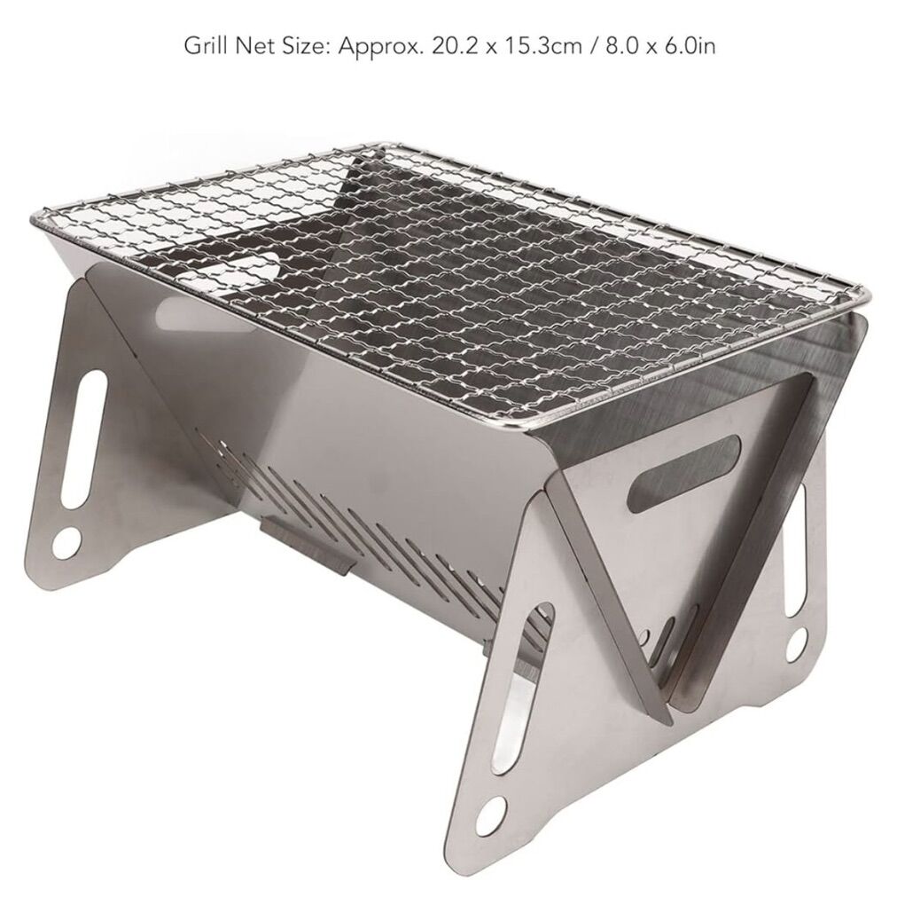 Folding BBQ Grill, Collapsible Grill, Heat Resistant Stainless Steel Collapsible Charcoal Grill Camping Grill with Ventilation Holes, Silver