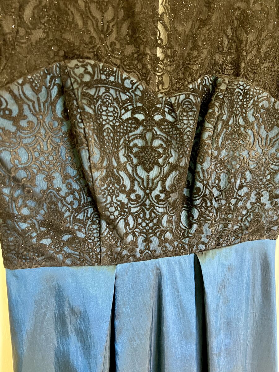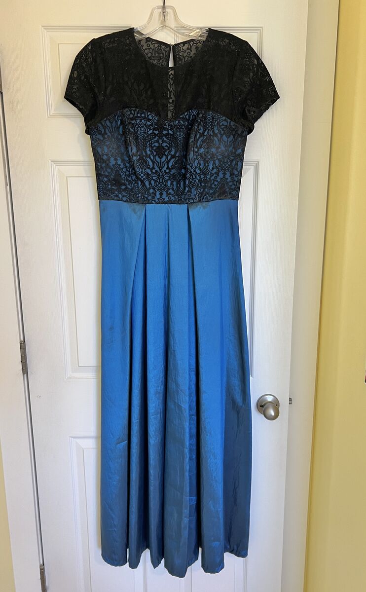 VenmoBeautiful, formal dress that has been worn twice for a choral performance. No signs of wear or damage. Black, lace, sheer, sparkly top half with a beautiful iridescent blue bottom. Great for a formal dance or party. Size 6. $50