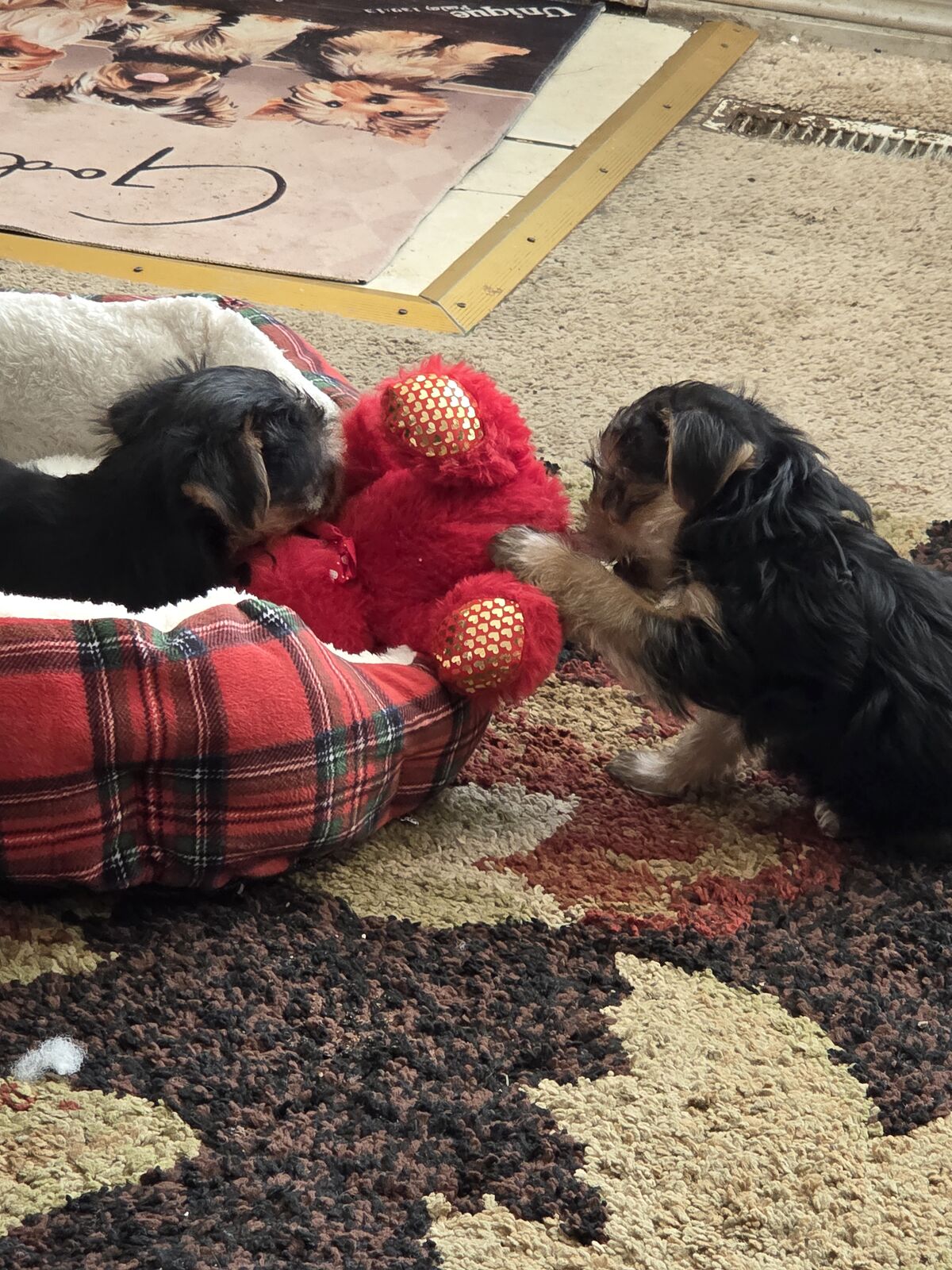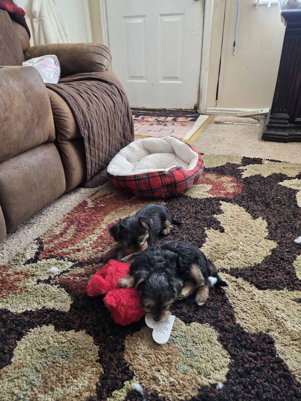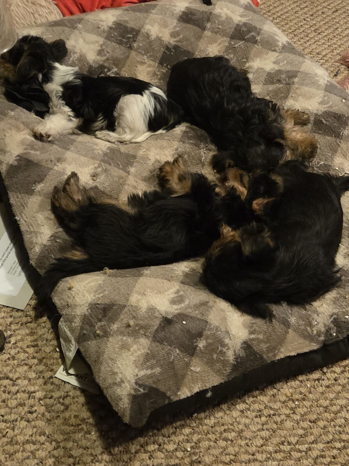 VenmoI have 2 girls 1 boy..Born October 10.. I have been working on house breaking.. All 3 are doing good ..Even using the dog door...Daddy is AKC Parti Yorkie..About 5 pounds..Mommy is a Standard and is about 8 pounds...On site for you to see...Puppies have had first shots..they do feel pain ..I choose not to dock thier tails...AKC requires the tail dock, If your are showing, in dog shows....If you have any questions ..Want to come see puppies, text or phone calls are best...Thanks for looking ..Have a great weekend...