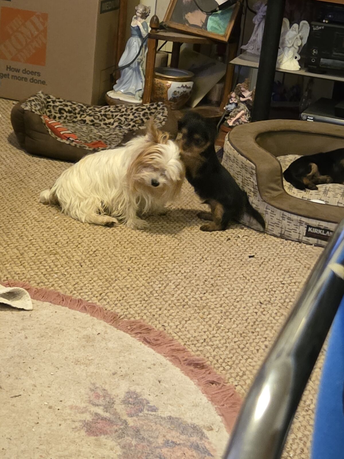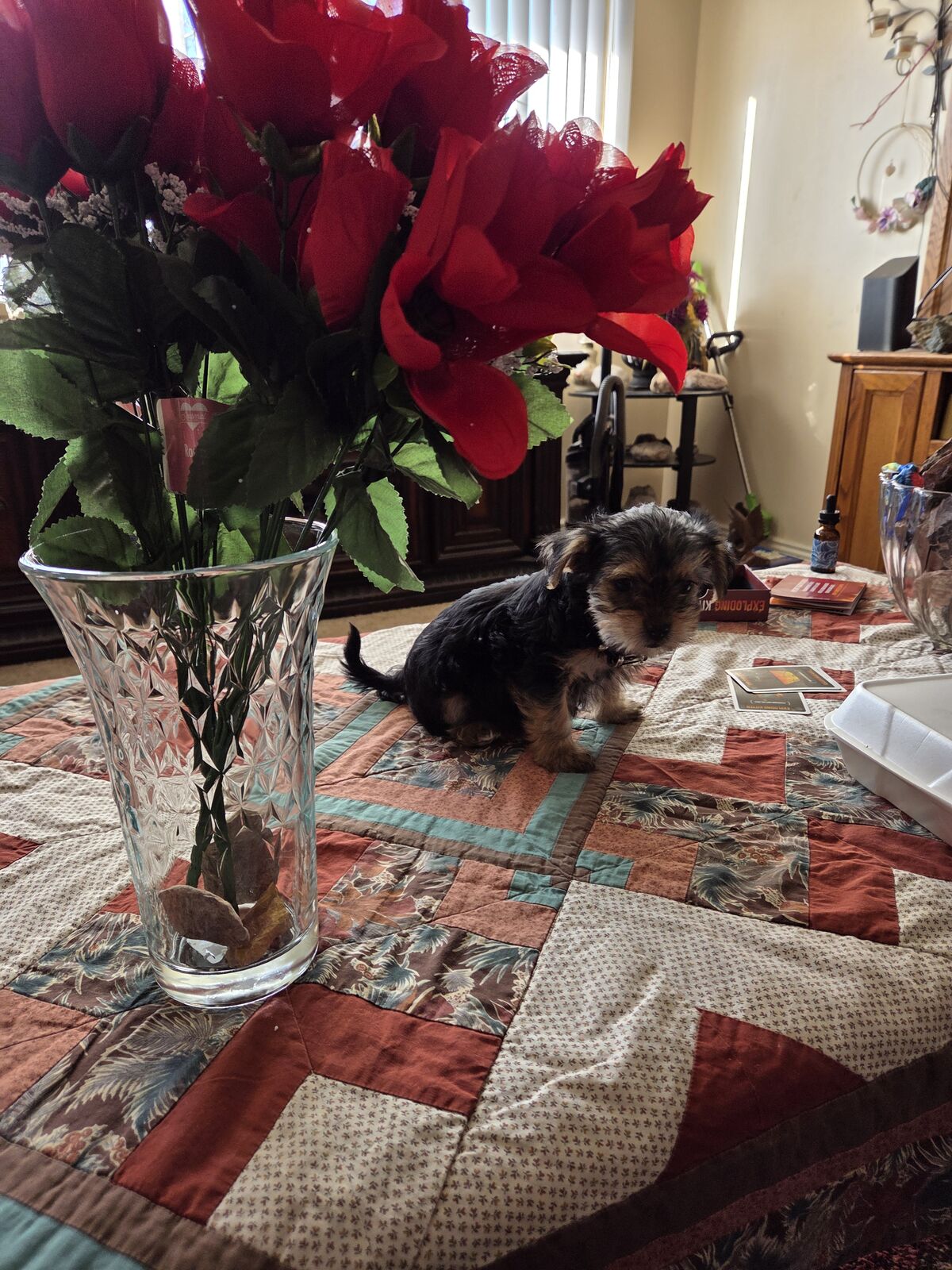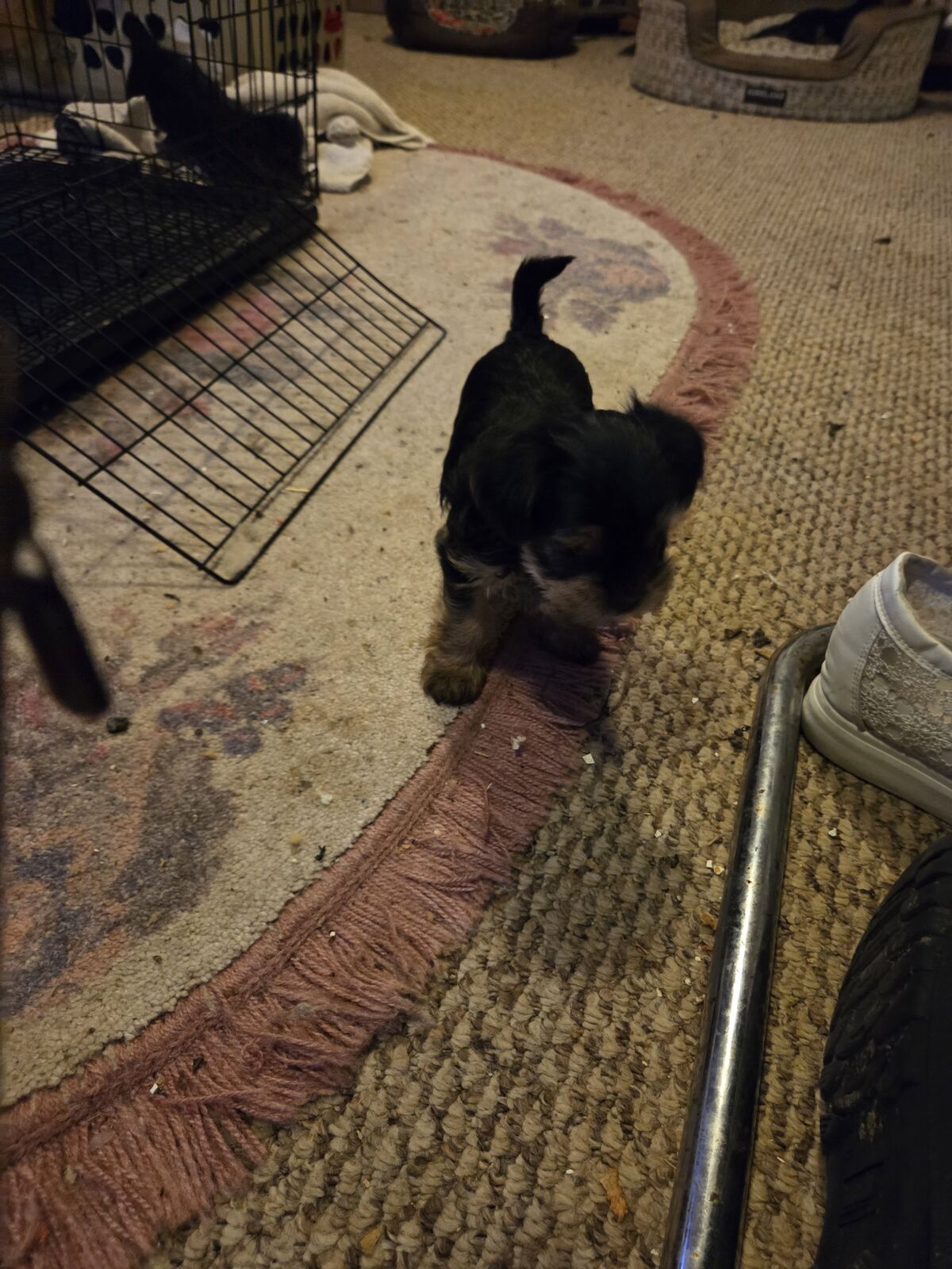 VenmoI have 2 girls 1 boy..Born October 10.. I have been working on house breaking.. All 3 are doing good ..Even using the dog door...Daddy is AKC Parti Yorkie..About 5 pounds..Mommy is a Standard and is about 8 pounds...On site for you to see...Puppies have had first shots..they do feel pain ..I choose not to dock thier tails...AKC requires the tail dock, If your are showing, in dog shows....If you have any questions ..Want to come see puppies, text or phone calls are best...Thanks for looking ..Have a great weekend...