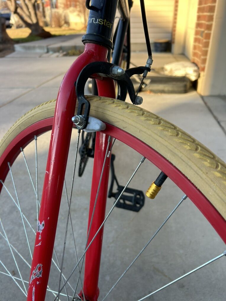 VenmoThis is a thruster single speed bike. The rear wheel has two drive sides, one side is a single speed freewheel, the other side is a fixed gear. Simply take the rear wheel off and flip it around and bolt it back on to take at vantage of either gear. It’s a bit old, but everything works fine. If it’s listed it’s still for sale.