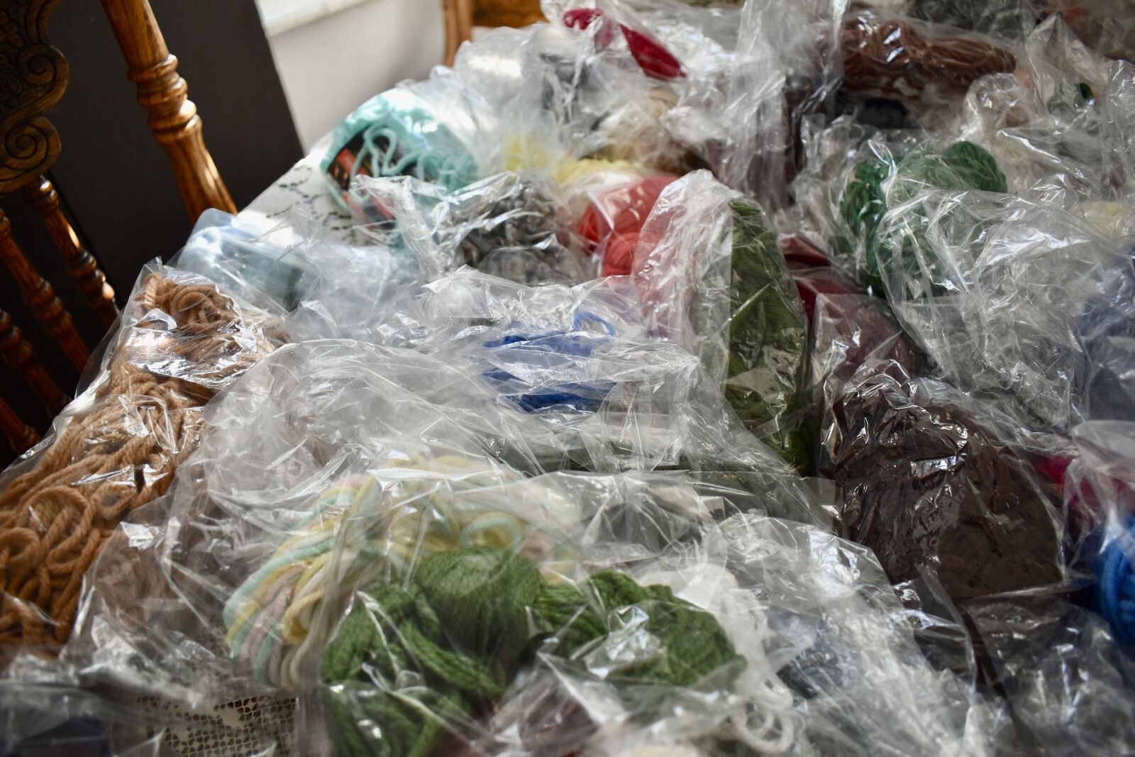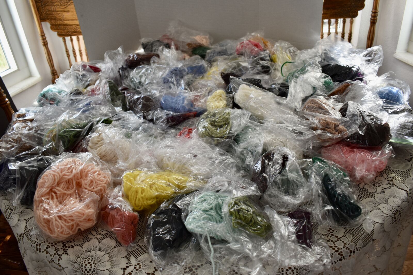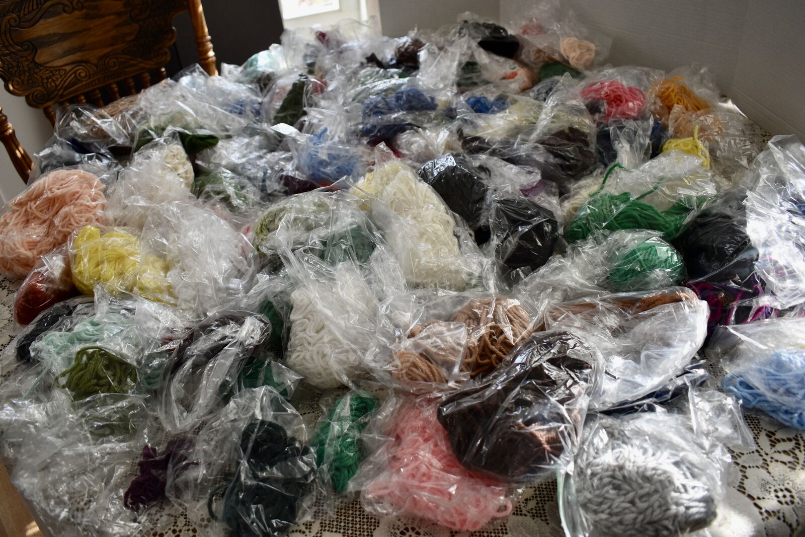 *We Will Sell This At A Really Great Price of ONLY $1.00 FOR 4 PACKAGES OF ASSORTED SANDWICH SIZE BAGS OF YARN IN ASSORTED COLORS AND SIZES—CASH & LOCAL PICK UP ONLY PLEASE- THANK YOU!
