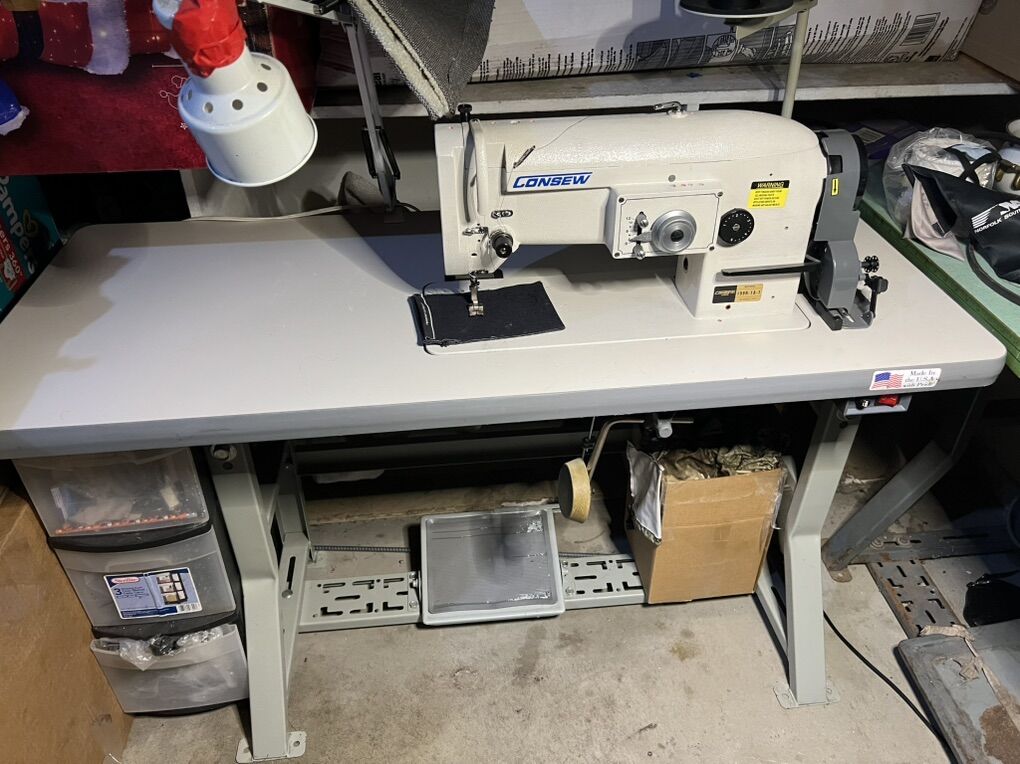 Consew 199R-1A-1 Single Needle, Drop Feed, Zig-Zag, Lockstitch Machine With: Horizontal Axis Transverse Rotary Hook, Reverse Feed, Combination Zig-Zag and Straight Stitcher Perfect Working condition. ready too work.