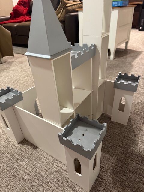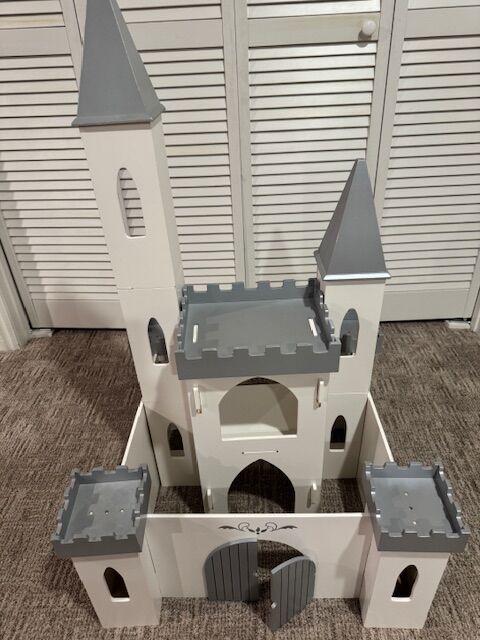 VenmoThis Pottery Barn Toy Castle is the quality you expect from Pottery Barn. It is an adorable wooden structure that is easily assembled and taken apart for storage. It is in very good shape--except it is missing the flags, ladder, and small balcony fence--pieces you wouldn't know are missing unless you looked at the box. Original box and instructions are included. This really is a charming toy. I hate to give it up, but my grandkids don't play with it anymore!