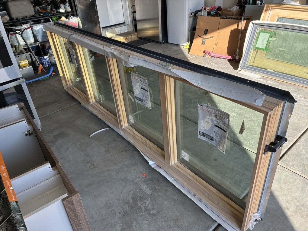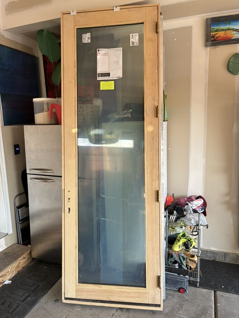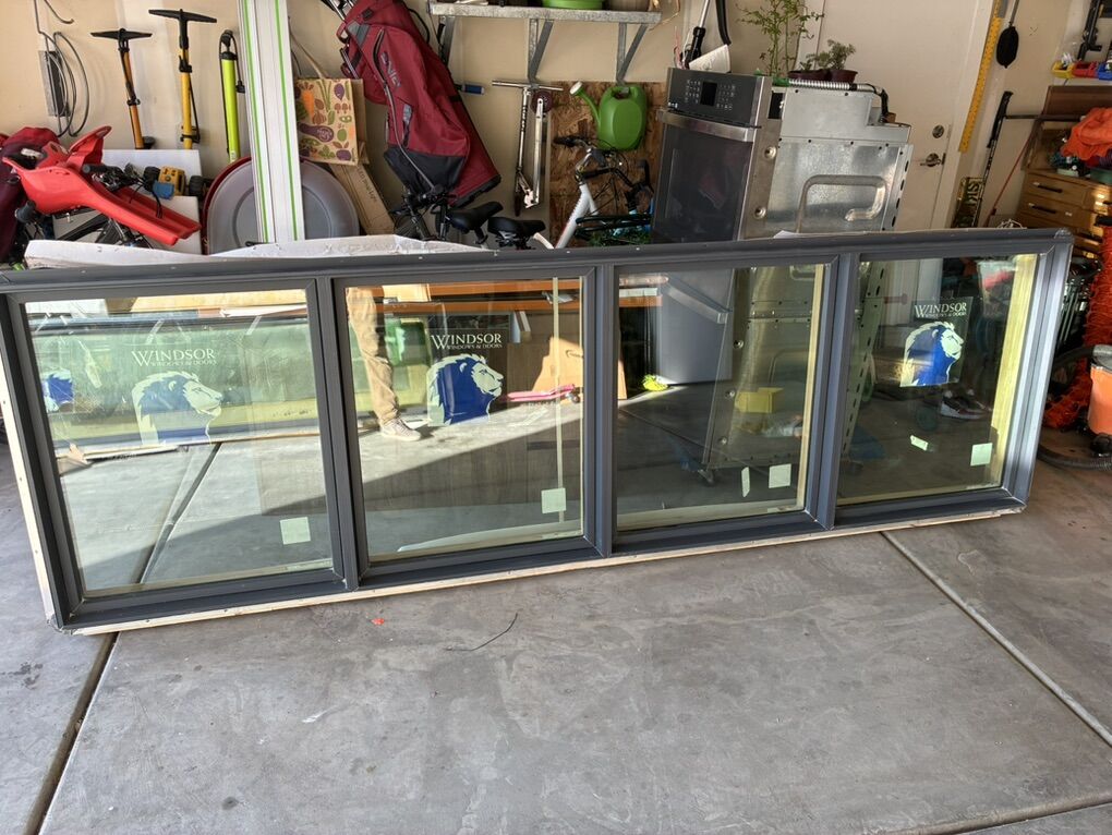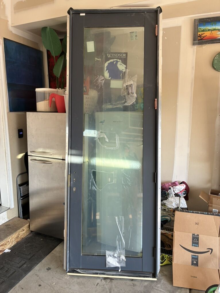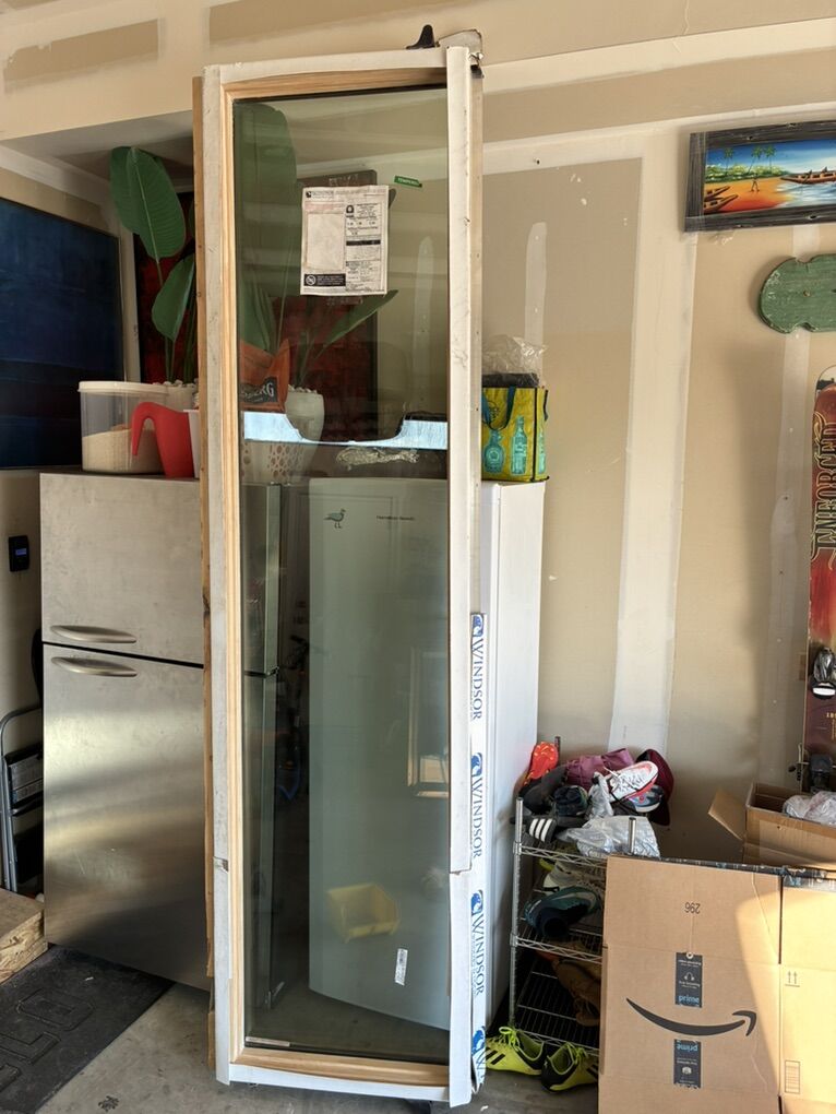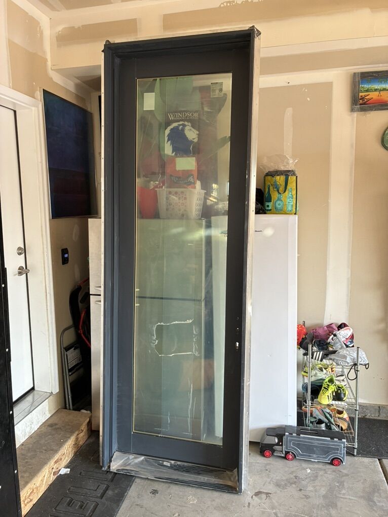 VenmoLot of two exterior entry doors and two windows. Aluminum clad exterior wood interior. High end. Retail is 6000+ each for doors! Brand Windsor Custom size 9’ tall 3’ wide One is outswing one is inswing Lot of two aluminum clad exterior wood windows. Both are picture windows. One is same height as door was made to go right next to it. Dimensions 120”x36” 27.5”x107”