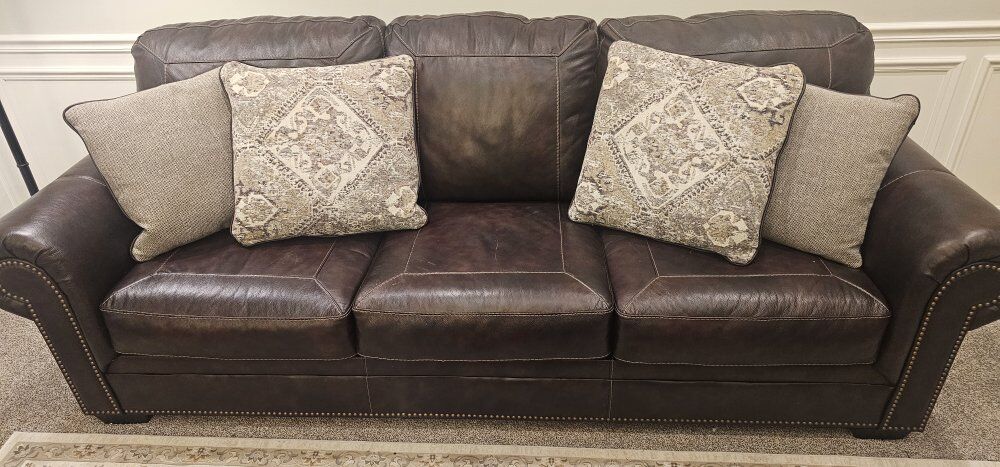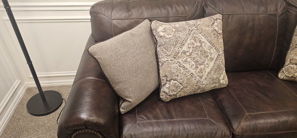 Venmoa nice pair of leather couches very clean and smoke free home, pillows included, does have some very minor wear marks.