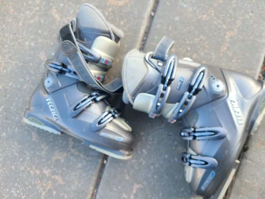 technica ski boots 26 to 26.5 fits Mets 8 to 8.5 and womens 9 to 9.5 has switch to flip from ski to walk to make walking more comfortable