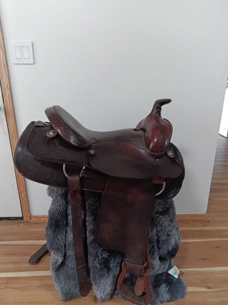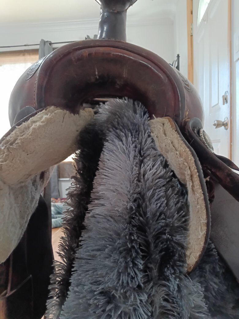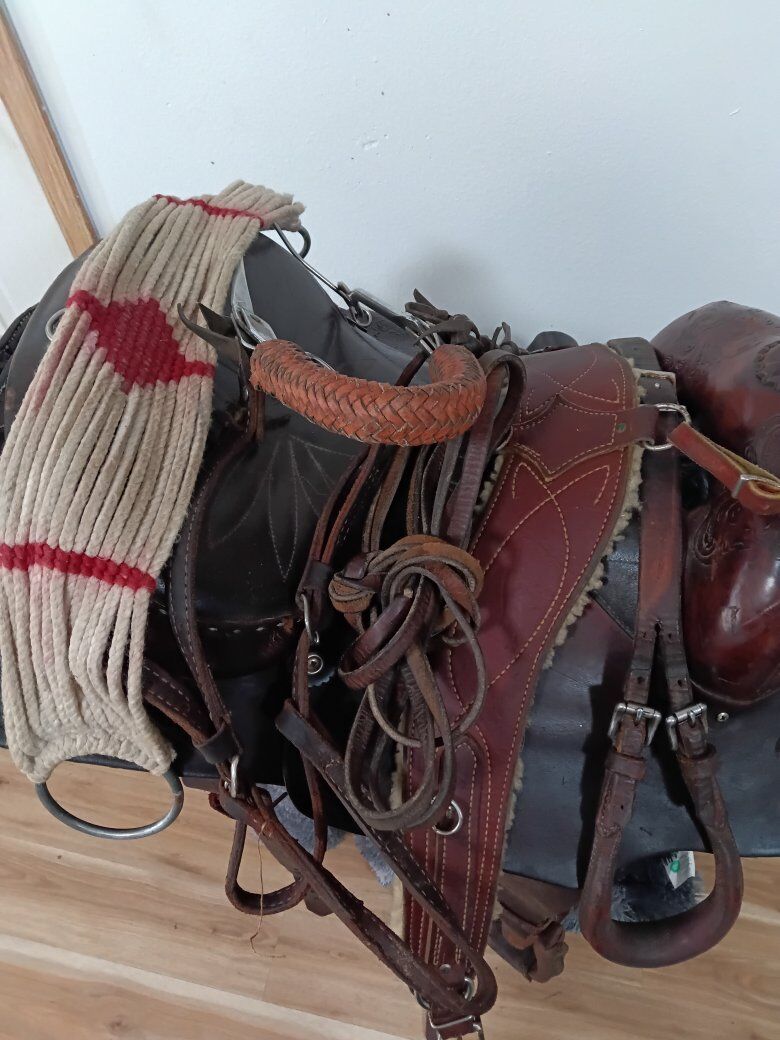 15 in action company saddle Headstall with hackamore and reins Breast collar Girth Back cinch Crupper $550 for the lot (NOT separating) Trade/partial trade for : boer goats, mini horse, gaming pc/laptop or??(No other animals then what's listed)