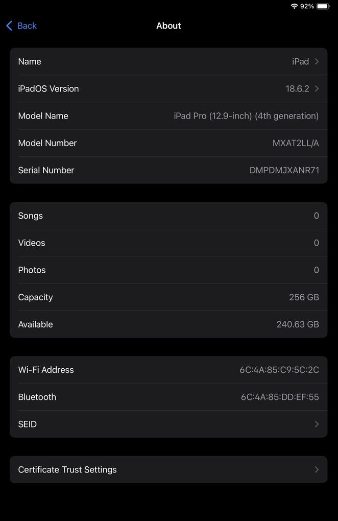 This iPad is in like new condition. It comes with the Apple Smart Keyboard which is $349 alone for this model. It has 256gbs of storage and comes with a charging cable. Super powerful and ready to help you accomplish whatever you throw at it. It does have a small engraving with the previous owners name but I put an Apple sticker over it plus the iPad is almost always on the keyboard case so I never see the back anyways.