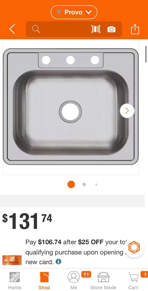 Dimensions Sink Front to Back Width (in.) 21.25 in Sink Left to Right Length (in.) 25 in Sink Top to Bottom Depth (in.) 6.375 in