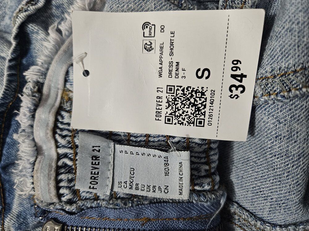VenmoSuper cute forever 21 short denim dress. Brand new. Size small. Tags intacted. Asking $15 dollars. Tag priced at $34.99 Please serious inquiries only. Cash, venmo or cash app accepted.