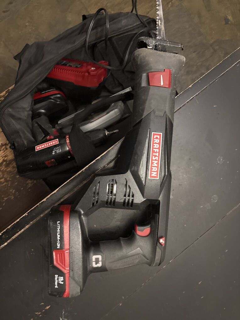 VenmoCraftsman power toolset. Still works great after several years. Batteries that still hold charge really well. Contains: Power Drill Reciprocating Saw 5-1/2” Circular Saw Craftsman Bag 2 19.2V Batteries Battery Charger