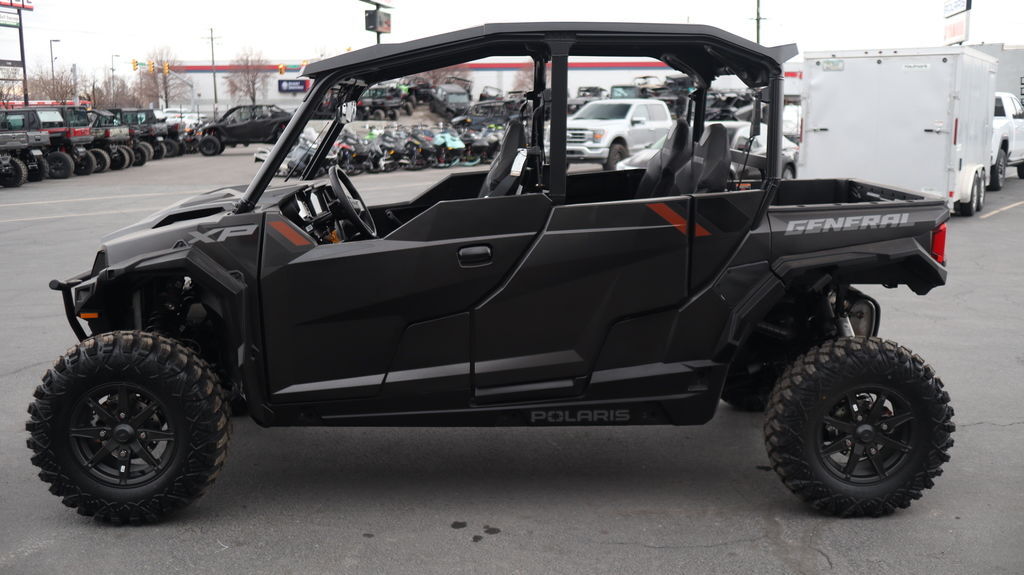 2026 Polaris® General XP 4 1000 Ultimate Unlock Next-Level Versatility Features may include: VERSALITY FOR WORK AND PLAY 600 LB Dumping Cargo Box: Our hinged rear bed can handle heavy loads, making cargo dumping simpler for you 13.5’’ Of Ground Clearance and 30’’ Tires: Ample ground clearance and capable tires allow you to get over obstacles on the trails Versatrac Turf Mode: Switch on more precise maneuverability for tighter turns and protect your lawn from tire marks. SMOOTH AND COMFORTABLE RIDE 14’’ Travel from Sport-Tuned Suspension: With over a foot of suspension travel, bumps and ruts are easily absorbed, for a smooth and comfortable ride on the trail. Adjustable, Bolstered Bucket Seats: Sit for longer periods and keep your body in place on rough terrain. Ride Command, Including GPS Mapping & Group Ride*: GPS with mapped out trail systems and group ride features makes navigating unknown trails easier and keeps your crew together. Rockford Fosgate® Premium Audio*: Epic days on the trail are made even better when you bring your favorite music along for the ride. PERFORMANCE WHERE IT MATTERS Quick Acceleration: Harness an Ultra-responsive 100 HP engine for performance on the trails and for work. 1,500LB Tow Capacity: Attach and pull up to 1,500 lbs. with our integrated hitch receiver. On-Demand True AWD/2WD: With the flip of a switch, you can engage AWD to get through whatever the trail throws your way.