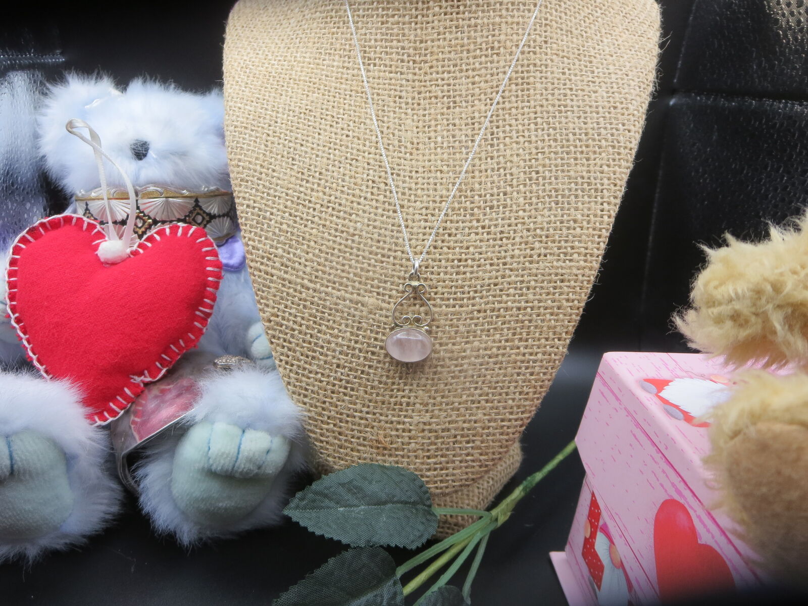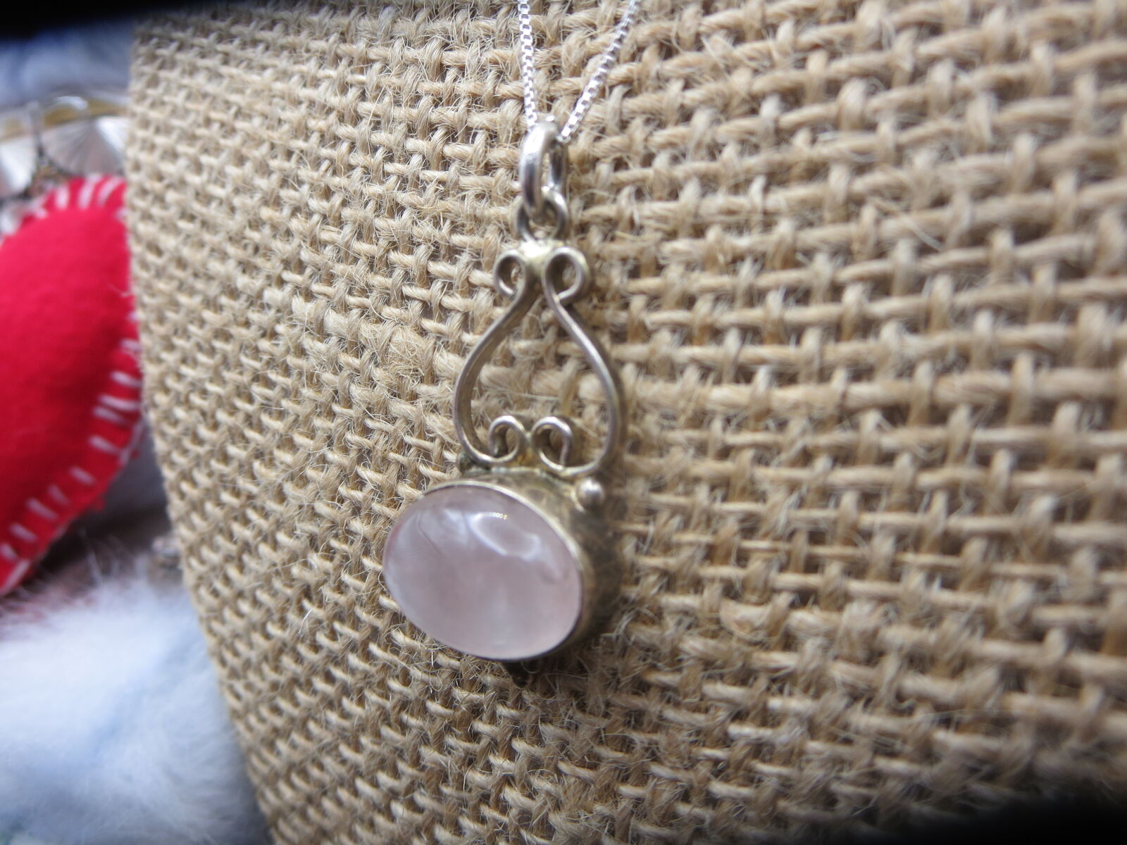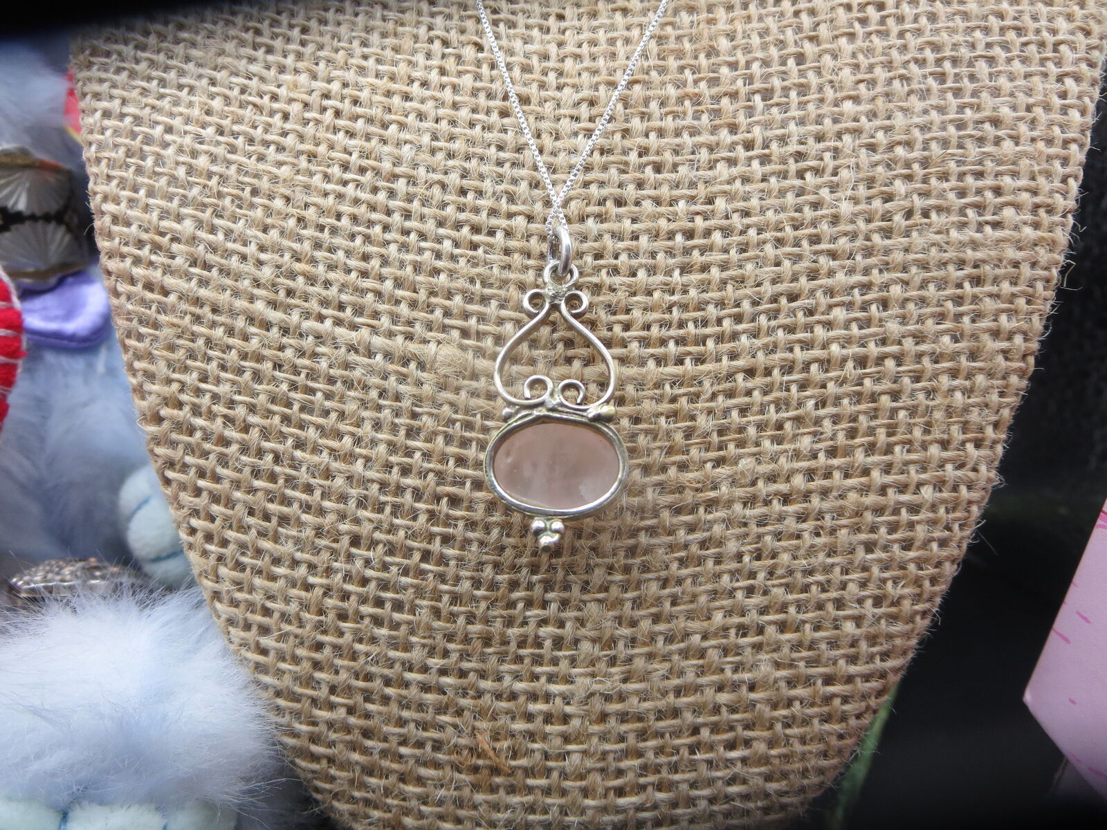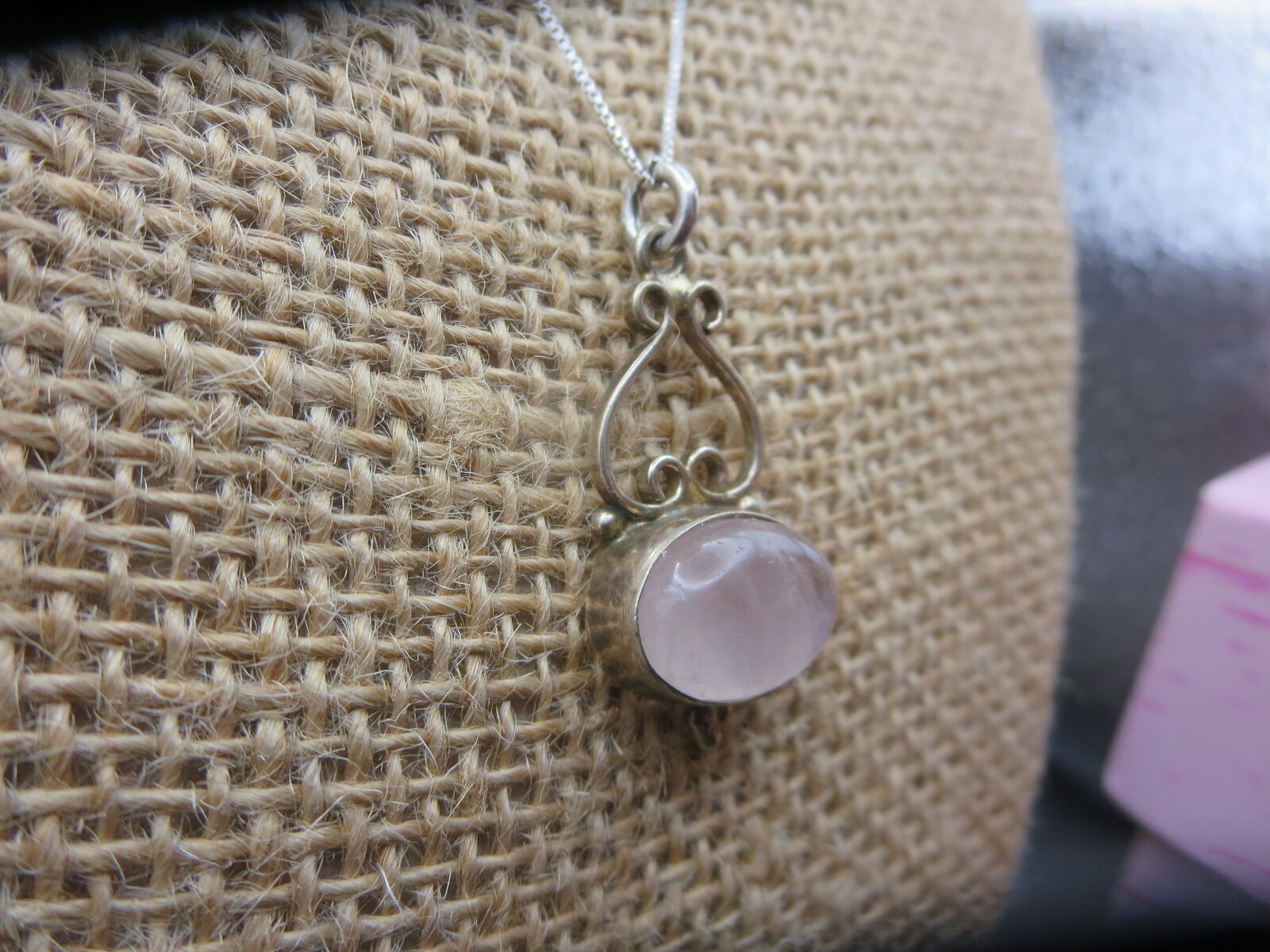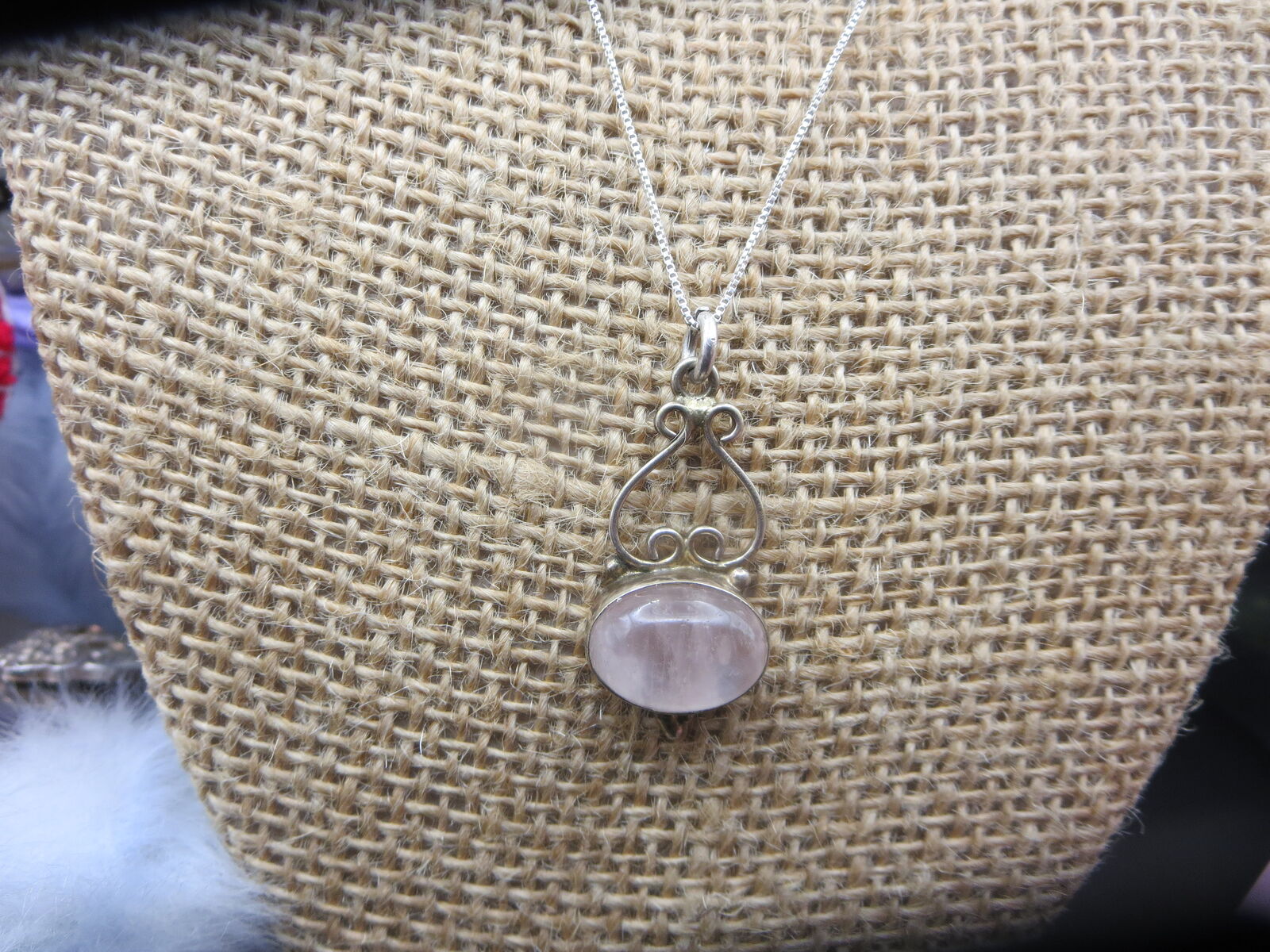 I have a. Beautiful sterling silver rose quartz pendant with 18" box necklace. For sale call or text only thanks for looking D.